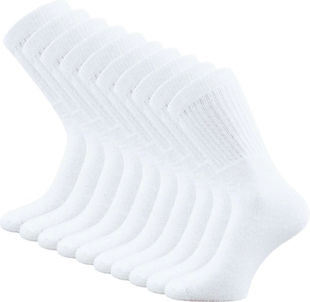 Set van 10 paar fijne sportsokken van het merk SQOTTON in de kleur wit. Deze sokken kunnen zowel tijdens het werken of sporten worden gedragen. Deze sportsokken hebben een uitstekend draagcomfort en zijn een ideale aanvulling op je werkkleding of sportkleding. Deze sokken hebben een stevige niet knellende boord waardoor de sokken goed blijven zitten en niet afzakken tijdens het sporten of tijdens het werken. De sokken zijn gemaakt van een hoog percentage katoen en hebben een dunne badstofvoering rondom de voet. Hierdoor zijn deze werksokken vocht absorberend, anti-transpirerend, ademend en zacht voor de huid. Dankzij de samenstelling van het materiaal en de verstevigde afwerking van de teennaad kunnen deze sokken tegen een stootje en gaan in vergelijk met andere sokken langer mee. Let er wel op dat de sokken niet te klein of niet te groot zijn. Te kleine of grote sokken zorgen al snel voor blaarvorming. De werksokken en/of sportsokken zijn verkrijgbaar in diverse maten en worden geleverd in een voordeelverpakking van 10 paar.