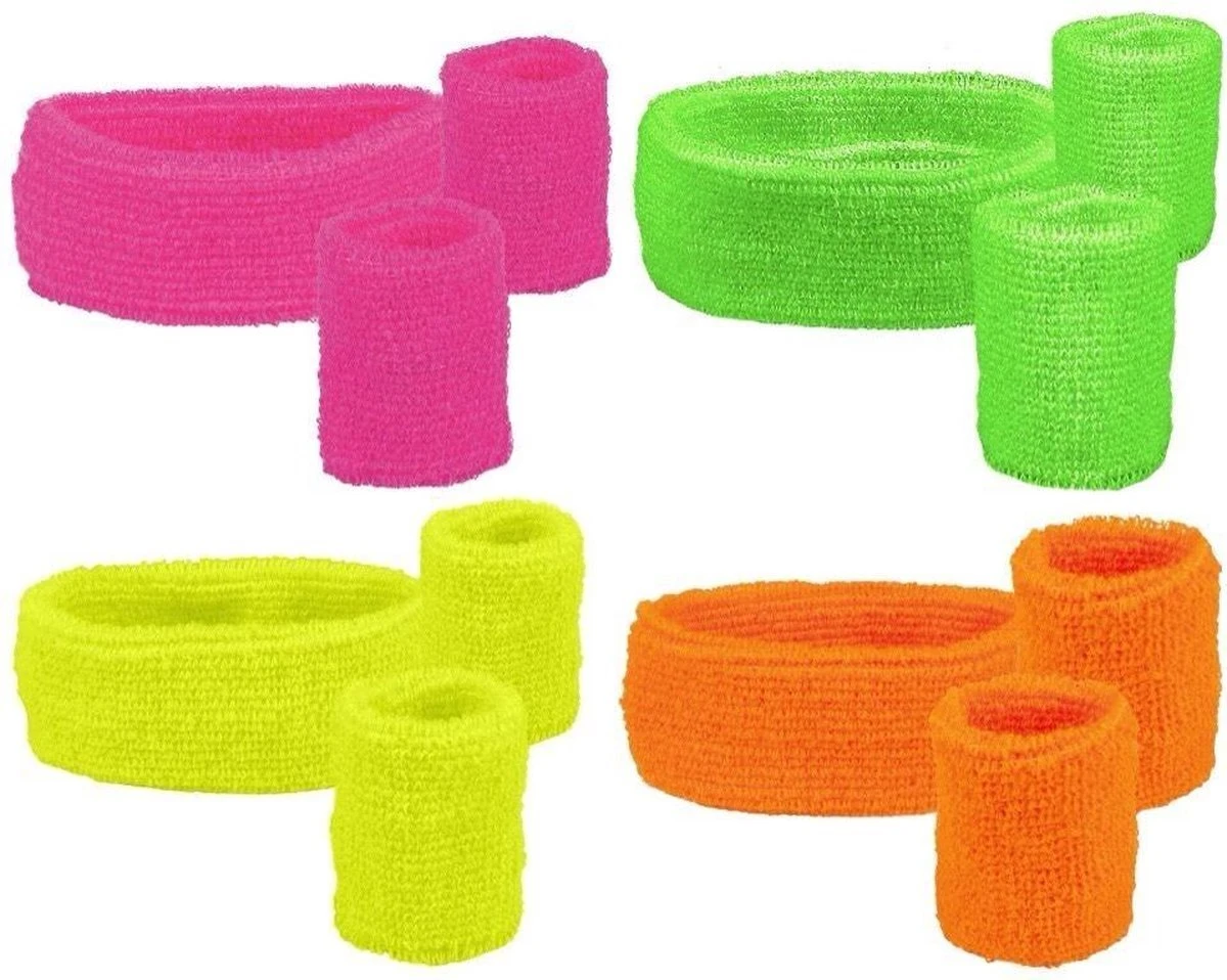 4 Sets Zweetbandjes Met Polsbandjes – Neon Pink, Neon Oranje, Neon Geel En Neon Goen.
