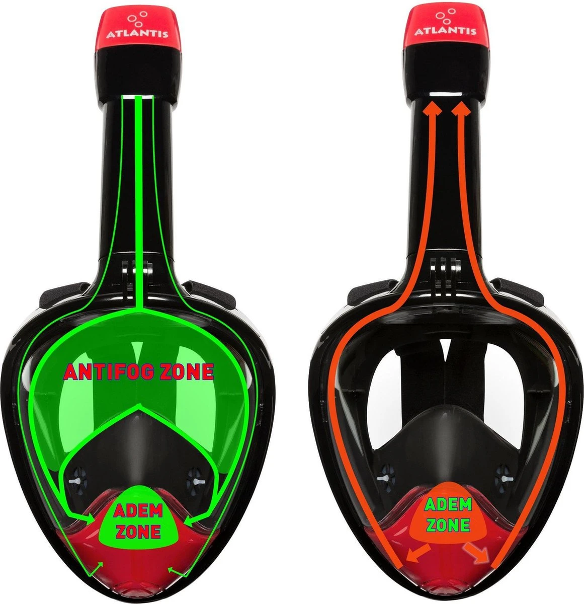 Het Atlantis 2.0 snorkelmasker is geschikt voor snorkelen aan de wateroppervlakte. Door het unieke ontwerp van dit full face masker adem je gewoon door je neus en mond. Ga je onder water dan sluit de dry top af waardoor er geen water in je snorkelmasker komt.