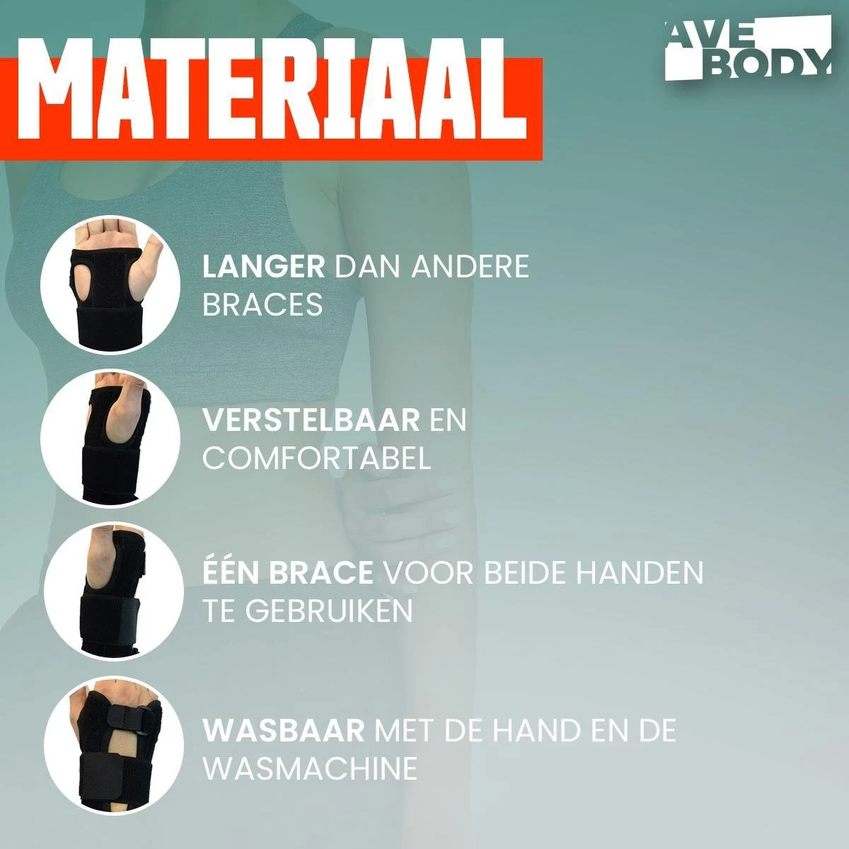 Met deze verlengde polsbrace verminder je je pijn aanzienlijk. Je hebt een stevige ondersteuning en versteviging van je pols en hand. Door de lengte van de polsbrace geeft deze veel zekerheid én minder pijn!