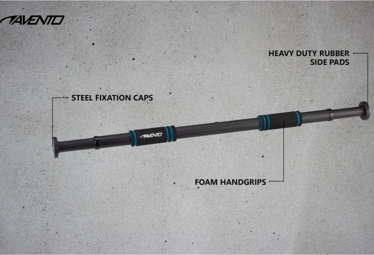 Met deze Avento Deurpost Trainingsstang in huis kun je een grote variatie aan oefeningen doen. Plaats de in lengte verstelbare optrekstang aan de bovenkant van je deurpost en train het bovenlichaam met pull-ups en varieer in gripposities om verschillende spiergroepen te trainen en de work-out net zo zwaar te maken als je zelf wilt. Je kunt de deurpoststang ook aan de onderkant van de deurpost vastzetten om sit-ups te doen. Het robuuste design en verstevigde ontwerp maakt het de ideale tool om een grote verscheidenheid aan spieren te trainen. De pull up bar is gemaakt van duurzaam staal met een luxe afwerking en heeft zachte foam handgrepen voor een goede en comfortabele grip.