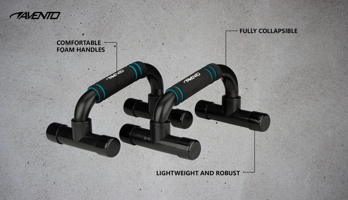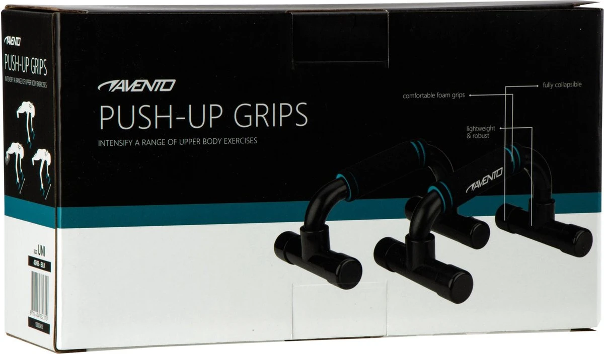 Train gemakkelijk je borst-, arm- en rugspieren met de Push-up Grips van Avento. Met deze opdruksteunen kun je gemakkelijk en effectief push-ups doen. De steunen zijn voorzien van een comfortabele foam grip, waardoor de polsen meer rust krijgen en je de oefeningen beter uit kunt voeren. De grips zijn geschikt voor sporters van alle niveaus. De sterke kunststof buizen zorgen voor een stevige balans en genoeg grip op de vloer. De push-up grips zijn ideaal om je work-out uit te breiden met een goede training voor het bovenlichaam. De grips zijn lichtgewicht en gemakkelijk mee te nemen door het lichte gewicht.