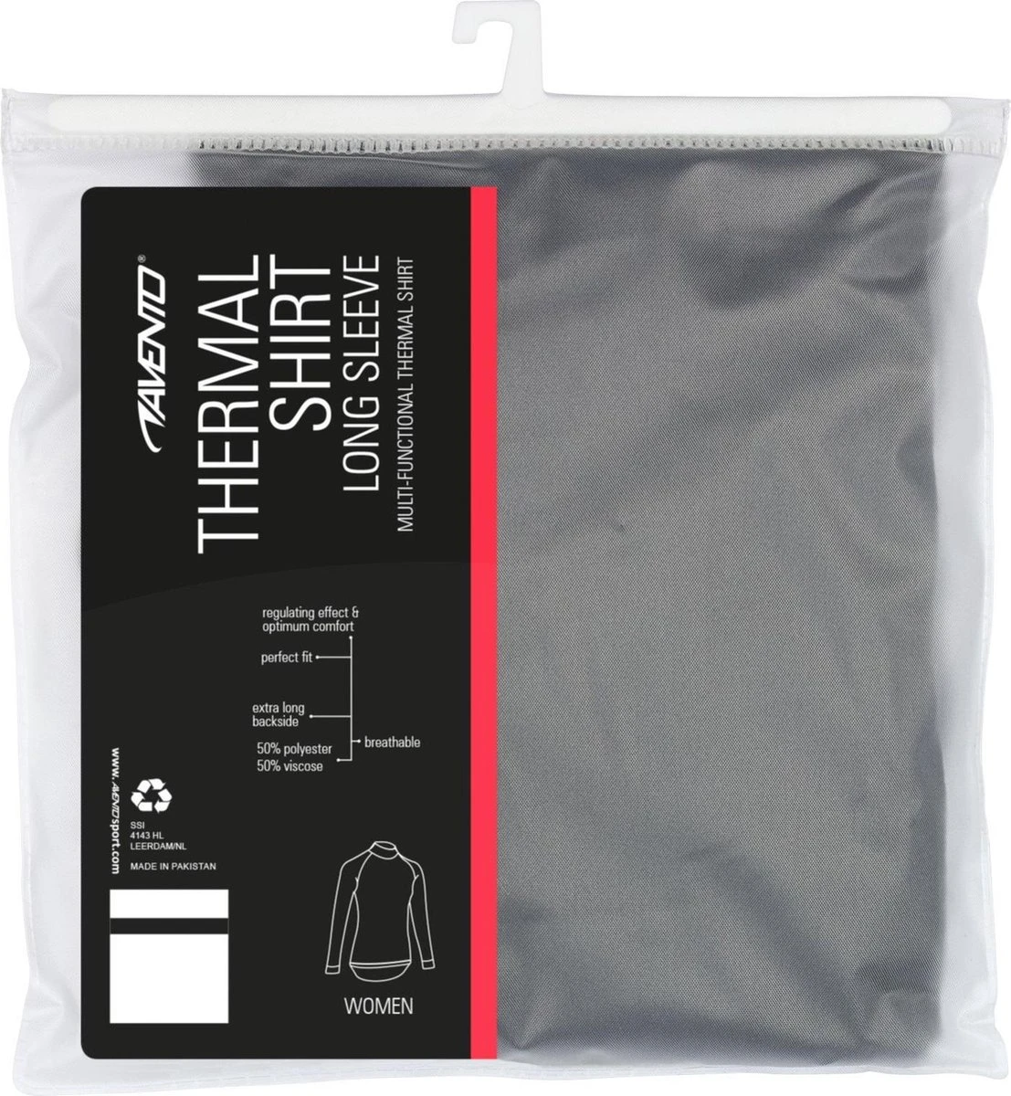 Avento thermoshirt voor dames met lange mouwen voor extra goede bescherming tegen de kou. Of je nu veel buiten werkt, wandelt of sport, met deze basislaag zorg je er voor dat je warm blijft. Door de combinatie van de duurzame, comfortabele stof en lange mouwen is deze thermokleding uitermate geschikt voor buitenactiviteiten in koude weersomstandigheden. De drop-needle textuur van de stof zorgt er voor dat het transpiratievocht razendsnel naar buiten wordt afgevoerd waardoor je lichaam droog en warm blijft.