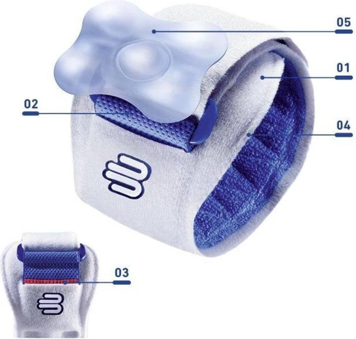 De orthese is een One Size product en wordt met een klittenband vast gemaakt rond de arm. De elastische rekband maakt een traploos instelbare compressiesterkte mogelijk. Er verschijnt een rood vlak op de band als de armband te strak zit en de druk te hoog staat ingesteld. Aan de onderkant van de arm oefent de pelotte met drie noppenzones een gerichte compressie op het betreffende spiergedeelte uit. Op deze manier worden de peesaanhechtingen ontzien, wordt de stofwisseling geactiveerd en wordt de pijn in de arm verlicht. Irritaties en ontstekingen genezen op deze wijze sneller.