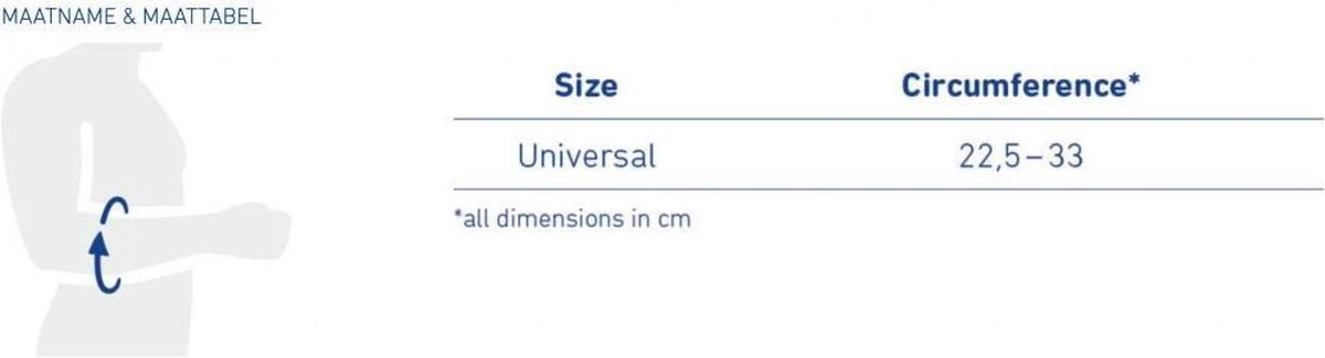 De EpiPoint elleboogorthese is te verkrijgen in twee verschillende kleuren (titaan en zwart) en één maat, dus past altijd. De EpiPoint kan zowel links als rechts worden gedragen!