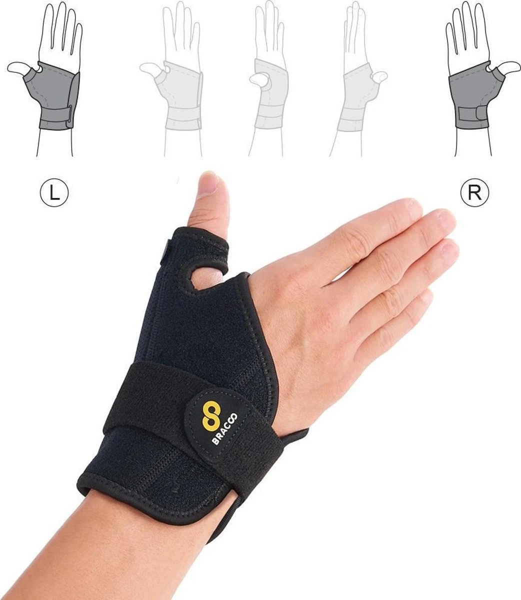 - UNIVERSELE PASVORM – Eén bandage, draagbaar aan zowel de linker- als de rechterhand; verstelbare gripbanden passen om polsen met een omtrek tot 25 cm en elk duimformaat.