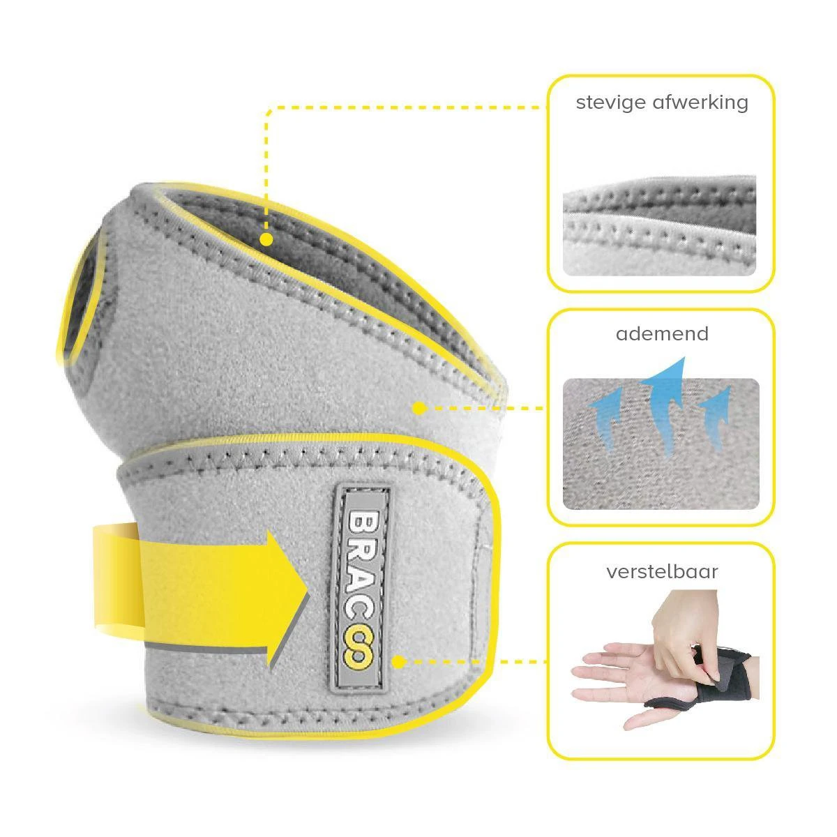 Bepaalde mensen kunnen een allergische reactie vertonen op neopreen stoffen, een synthetische rubber die vaak gebruikt wordt in afwashandschoenen, wetsuits en medische bandages. Om de kans hierop te verminderen gebruikt Bracoo alleen de hoogste kwaliteit latex-vrije neopreen.