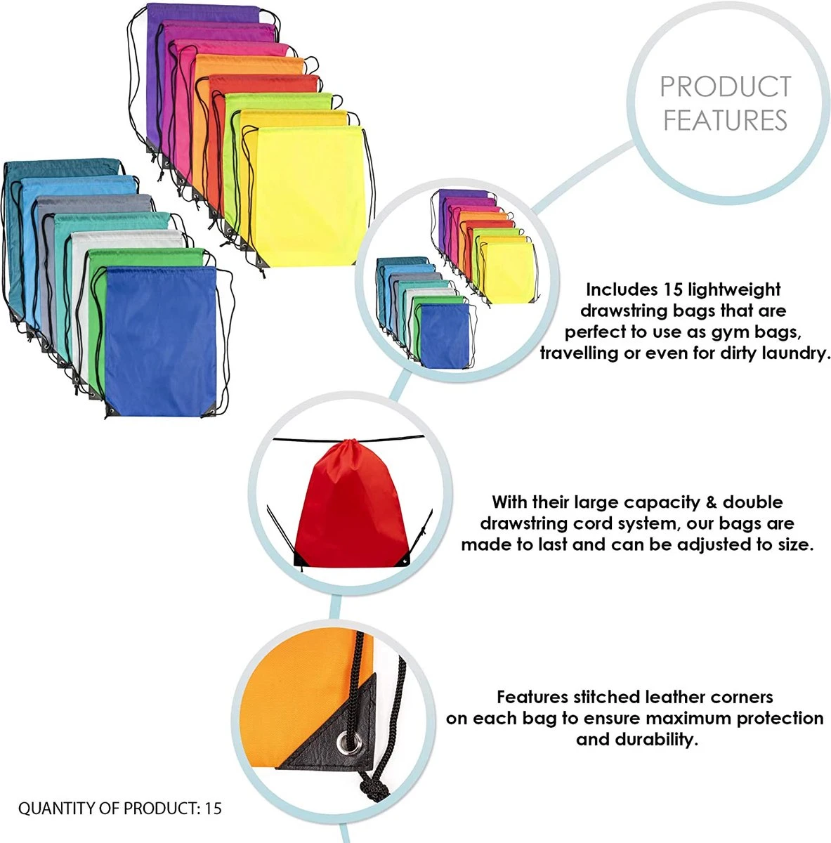 - Multifunctioneel – Ideaal als nachttassen, gymtassen, schooltassen en meer. Onze trekkoordtassen zijn ook handig voor het scheiden van items of wasgoed in uw bagage tijdens het reizen.