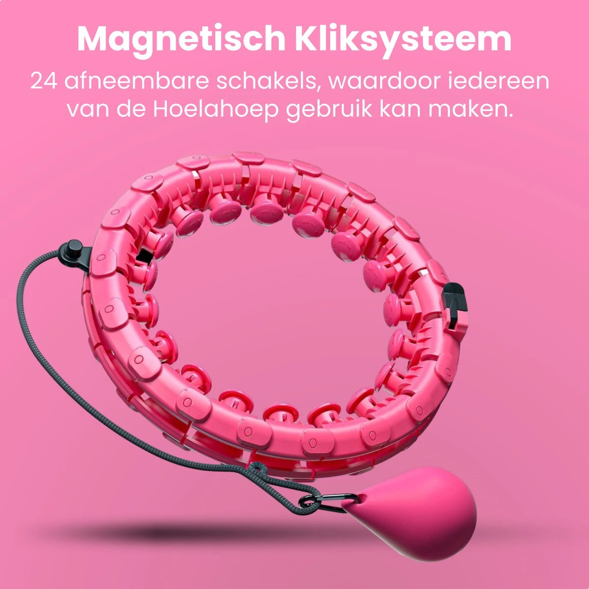 De Hoelahoep wordt geleverd met 24 afneembare schakels die naadloos op elkaar aansluiten en zorgen voor de perfecte pasvorm voor iedere taille. Zo zorgen wij ervoor dat het hele gezin met de Breaking Limits Hoelahoep kan trainen! In de buitenlaag van de Hoelahoep zit een kliksysteem met magneten verborgen, waardoor je de delen gemakkelijk aan elkaar kunt monteren/verwijderen. Tevens zorgt het kliksysteem ervoor dat de Hoelahoep delen niet zomaar van elkaar afschieten tijdens je workout. De Hoelahoep is gemakkelijk mee te nemen naar de (speel) tuin, het strand of op reis.