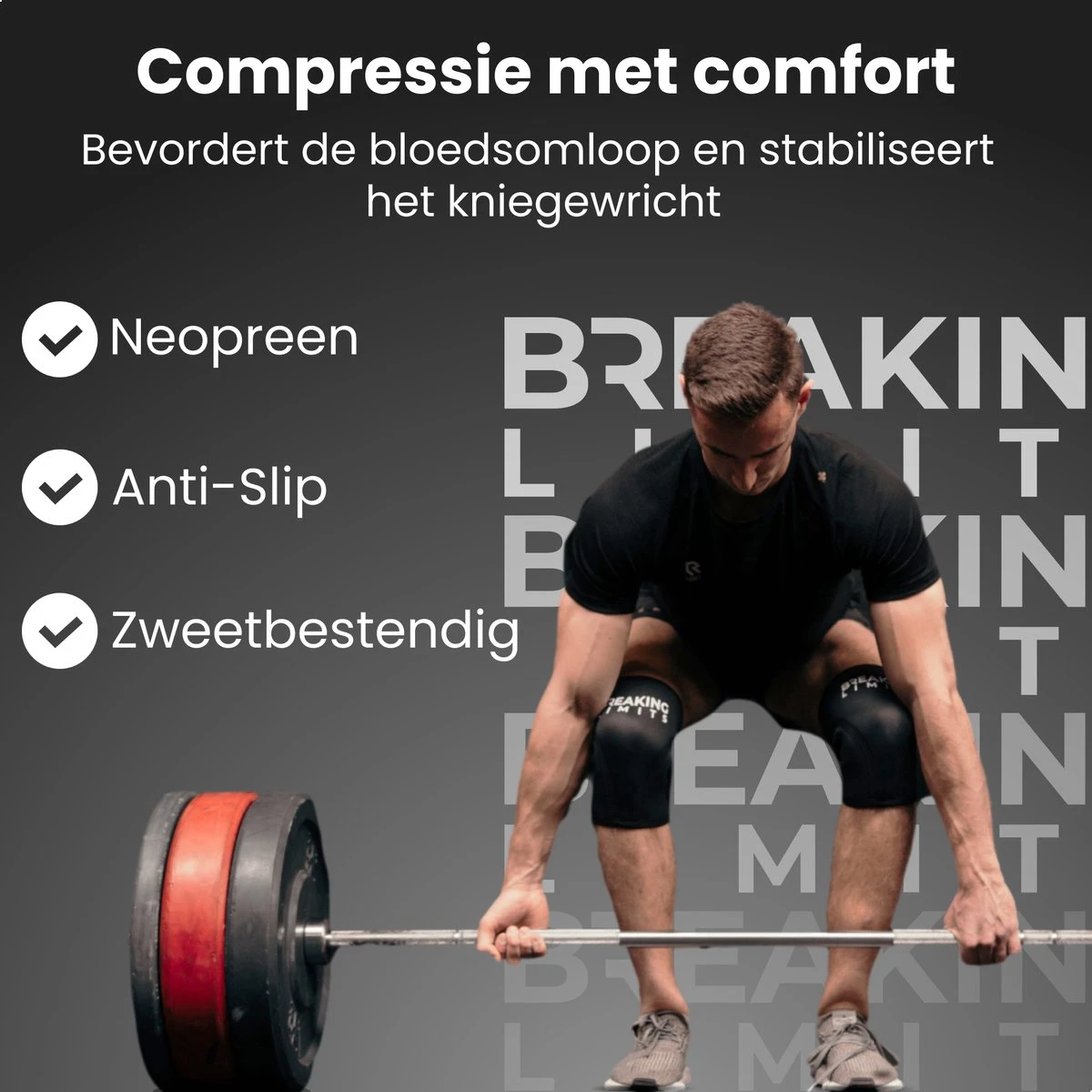 Focus je op een nieuw PR in plaats van pijnlijke knieën en koop vandaag nog de Knee Sleeves van Breaking Limits®!
