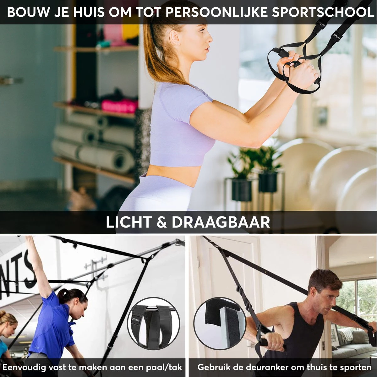 De suspension trainer maakt het mogelijk dat je niet meer afhankelijk bent van de sportschool. Door de veelzijdige oefeningen die je kunt uitvoeren met de Suspension Trainer kun je gemakkelijk thuis trainen. Het trainingsmiddel is makkelijk te bevestigen aan een deur, boom of stang. Hierdoor kun je op iedere gewenste plek sporten! De Suspension Trainer zelf is licht en gemakkelijk te vervoeren. Tevens kan deze gemakkelijk worden opgeborgen.