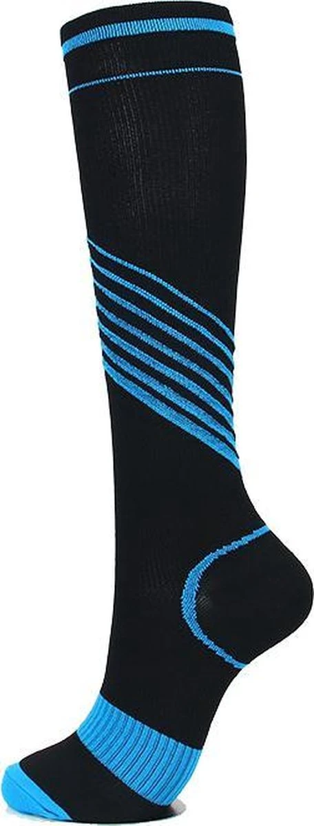 Therapeutische compressie kousen voor het hardlopen (maat 41-44). Deze stevige kousen bieden goede ondersteuning en compressie voor voeten, enkels en kuiten. Hierdoor helpen ze om vervelende pijntjes, krampen, zwellingen, spataderen en ook reisbenen te voorkomen. Daarom zijn deze therapeutische compressie kousen naast het hardlopen ook uitermate geschikt voor (lange) reizen met het vliegtuig.