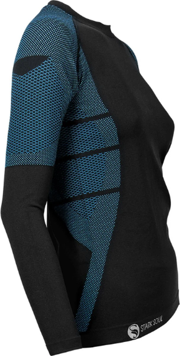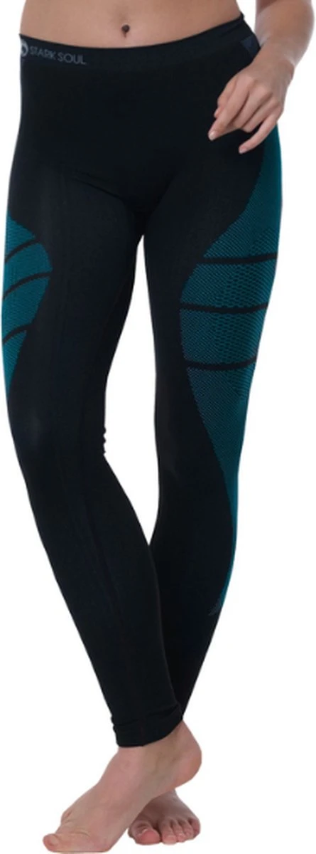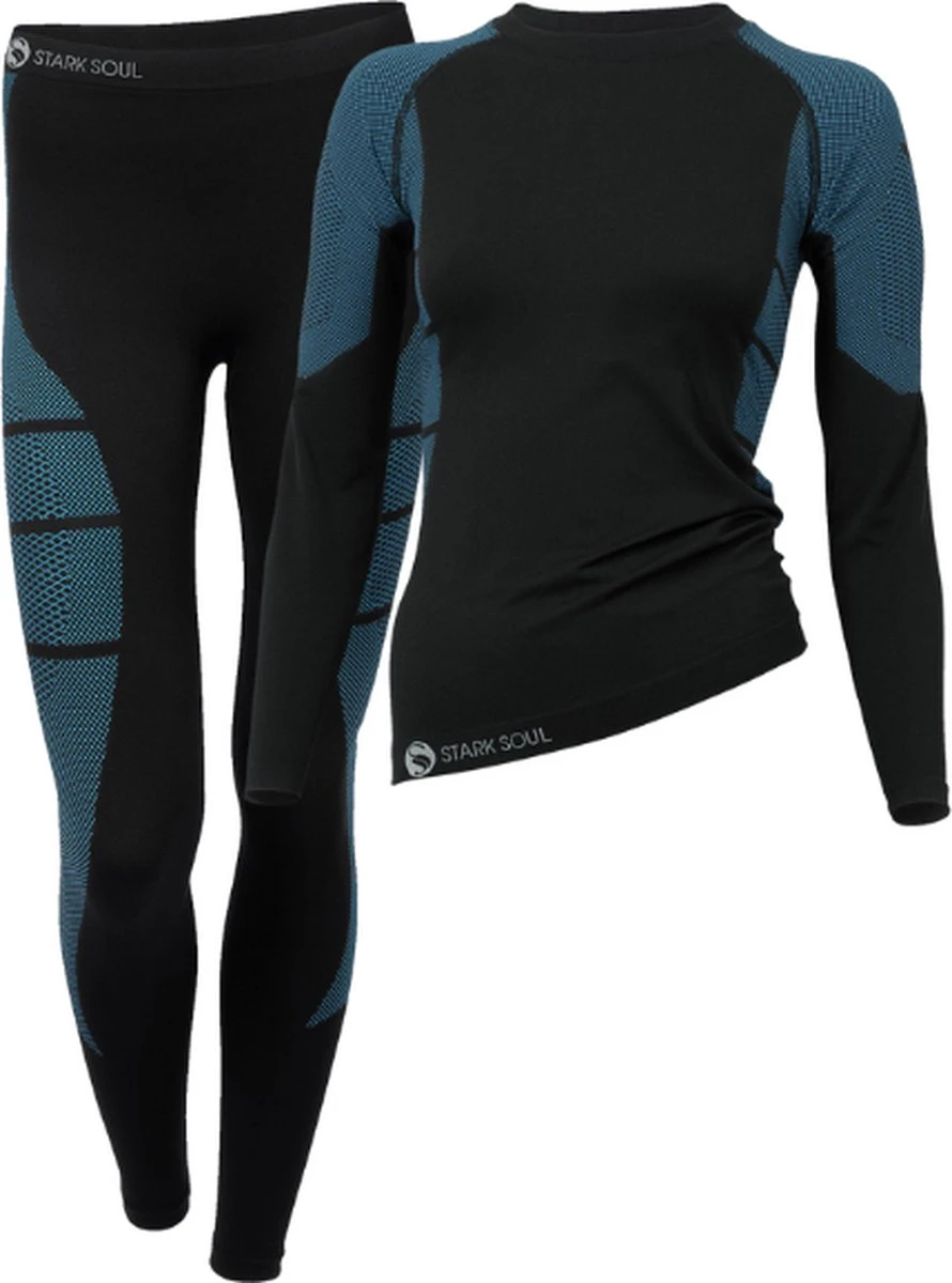 Stijlvolle dames sportkleding in de kleuren zwart met turquoise. Deze hoge kwaliteit thermoset is een onmisbare basic voor iedere sporter. Deze sportset is licht en soepel waardoor de het dragen aanvoelt als een tweede huid. Deze sportset heeft een uitstekende pasvorm. De sportkleding geeft je alle bewegingsvrijheid die je nodig hebt. Door de combinatie van weeftechniek en materiaal is deze sportpak sneldrogend, ademend, vocht- en temperatuur regulerend. Met deze sportlegging en sportshirt krijg je het hierdoor niet te koud maar ook niet te warm. De legging en shirt is dan ook zeer geschikt voor sport binnen én buiten. Doordat de sportkleding dun is kun je deze legging en shirt ook prima dragen als extra laag bijvoorbeeld tijdens wintersport. De sportset heeft een fijne naadloze afwerking zonder vervelende zijnaden. Deze comfortabele sportkleding is als set verkrijgbaar.