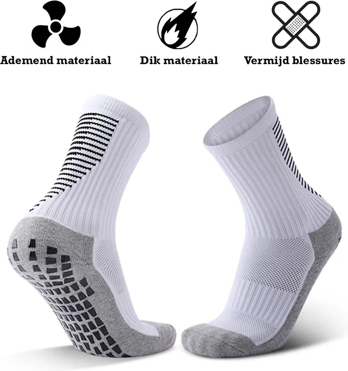 Gripsokken zijn geweldige sokken die speciaal zijn ontworpen voor activiteiten zoals voetbal, basketbal, yoga en andere workouts waarbij grip en stabiliteit essentieel zijn. Ze hebben gripzolen die zorgen voor een goede grip op de vloer of in de schoenen, waardoor je je beter kunt concentreren op je oefeningen en minder kans hebt om uit te glijden of te vallen.