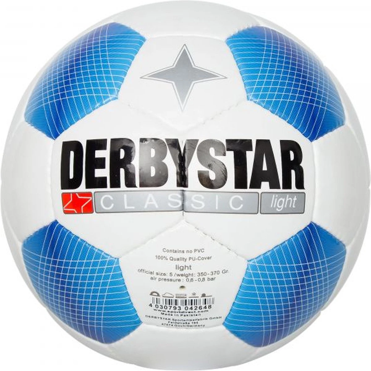 Classic Light van Derbystar in de kleur blauw, geschikt voor heren en dames. De Derbystar Classic Light is een klassieke Derbystar bal. Deze lichte uitvoering (360 gram) is speciaal geschikt voor de jeugd O13 t/m O15. De bal is vervaardigd uit duurzaam PU-materiaal, heeft stabiele vluchteigenschappen en is daarmee uitermate geschikt als trainingsbal. Deze bal is enkel geschikt voor gras en wij raden af deze op straat te gebruiken, of op kunstgras wegens kans op verhoogde slijtage.