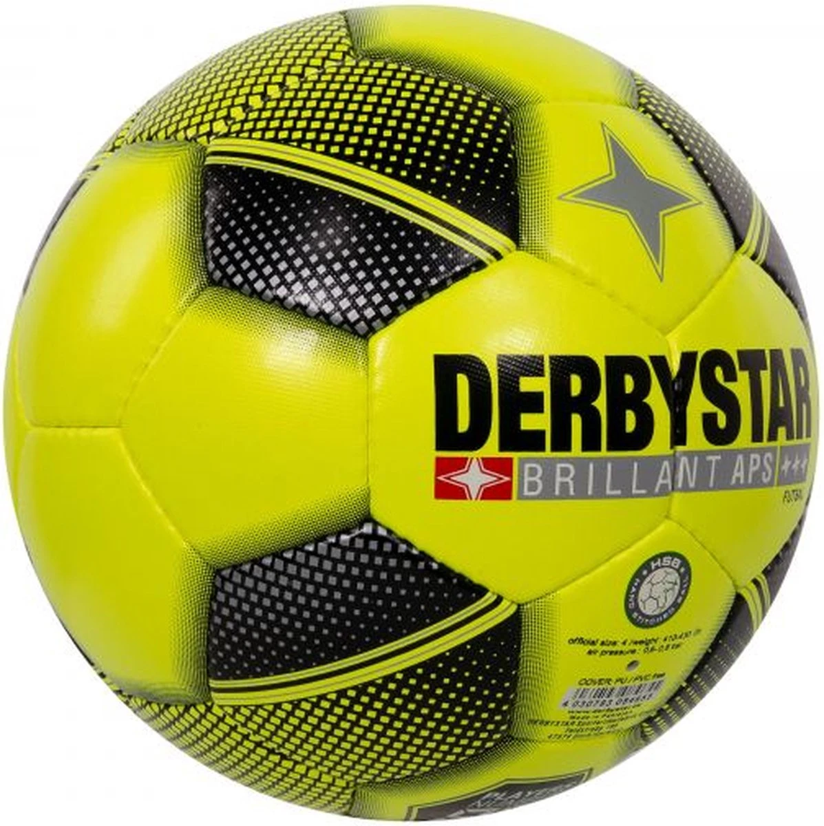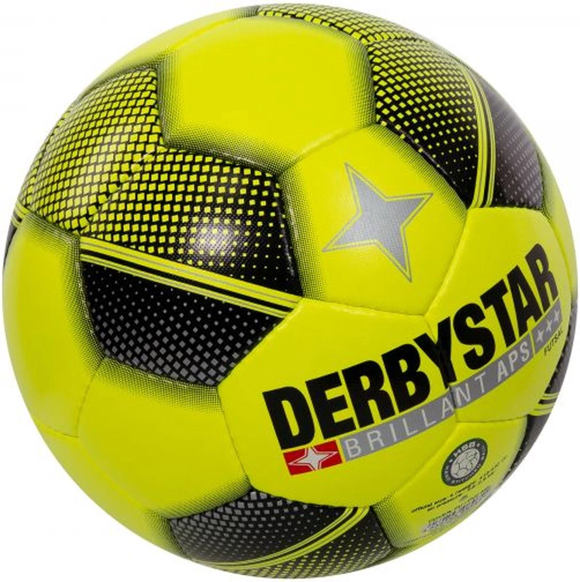 Futsal Brillant van Derbystar in de kleur geel, geschikt voor heren en dames. Deze bal van professionele wedstrijdkwaliteit is specifiek geschikt voor zaalvoetbal/futsal. De handgestikte bal is met 63 cm wat kleiner in omvang dan een ‘gewone’ voetbal, maar weegt evenveel. In combinatie met een speciale butyl-blaas geeft dit de bal een sterk gereduceerde sprongkracht (low bounce effect). De Futsal Brillant heeft het keurmerk FIFA Quality Pro, waarmee de bal aan alle kwaliteitseisen voldoet voor het hoogste internationale niveau.