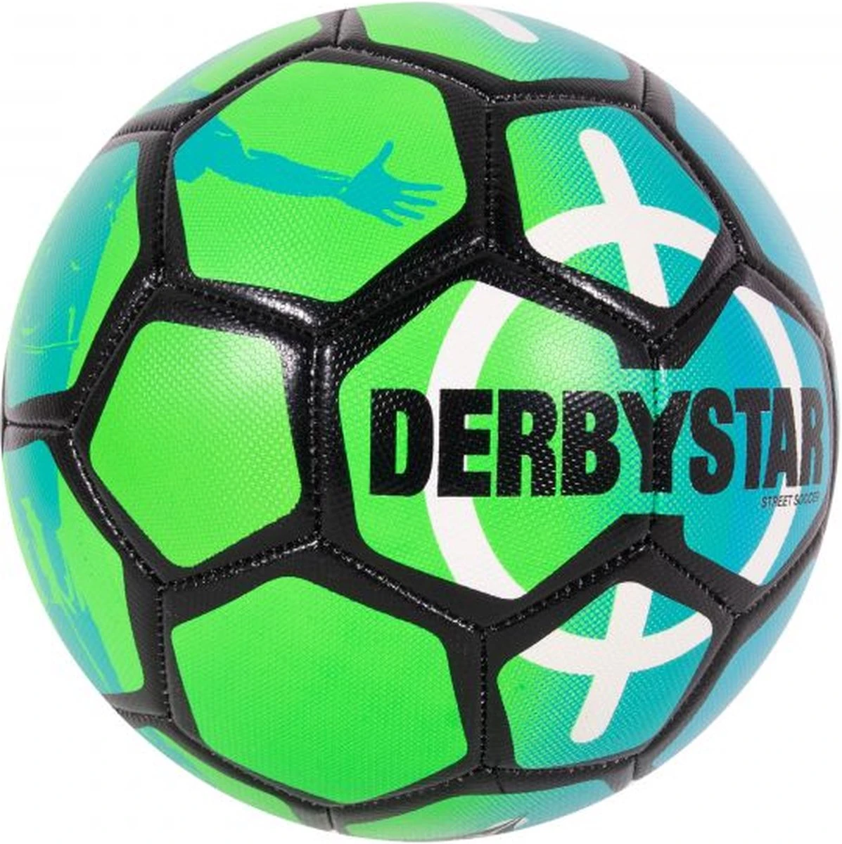 Street Soccer Ball van Derbystar in de kleur groen, geschikt voor heren en dames. De Derbystar Street Soccer Voetbal is een recreatieve bal, met een stoer design. Uitstekend geschikt voor spelen op straat. Gemaakt van soft PVC en machinaal gestikt.
