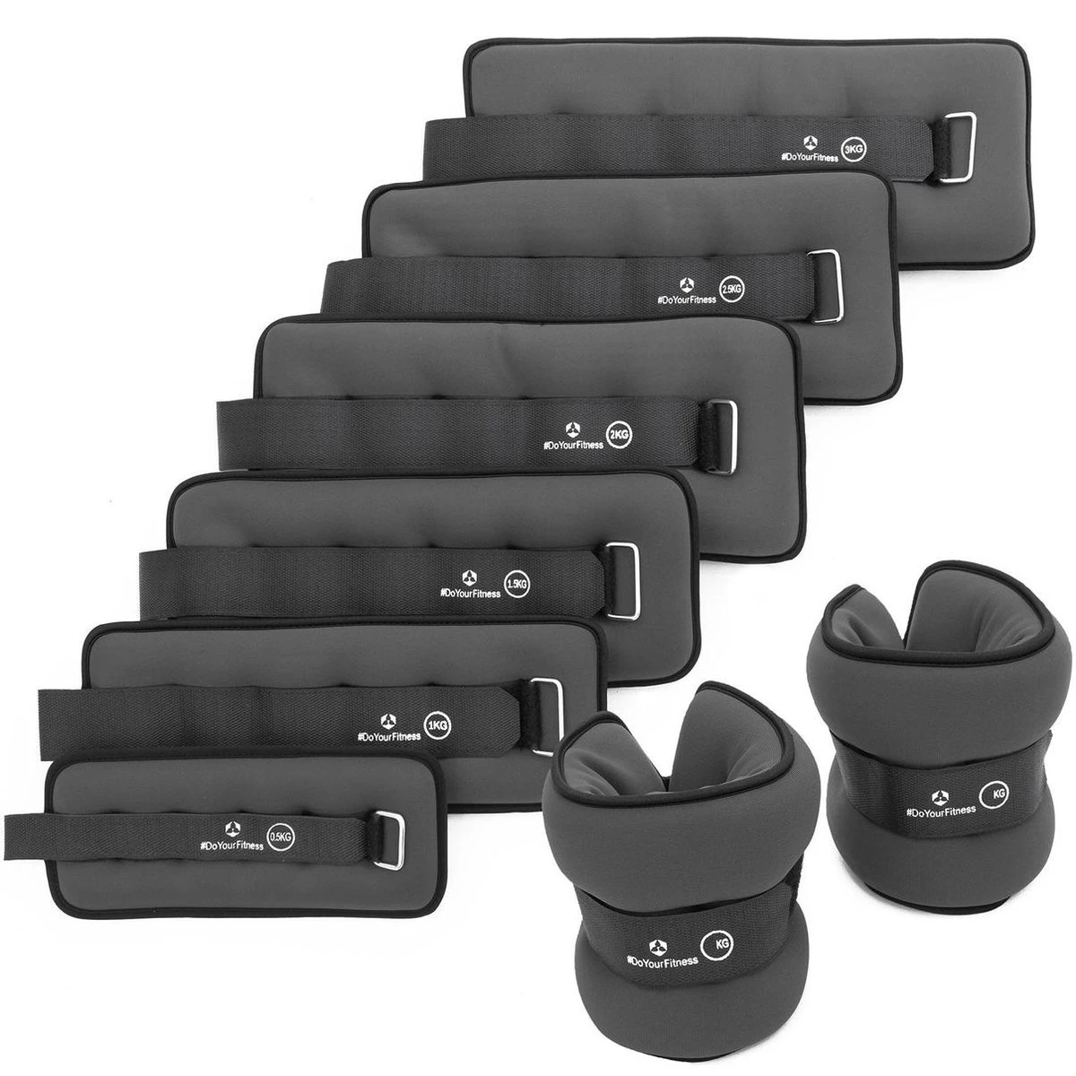 #DoYourFitness® – Neopreen Enkel- & Polsgewichten »Mevia« – 0,5 Kg Tot 3 Kg – Robuuste Klittenbandsluiting – Ankle / Wrist Weights – 3kg / Blauw & Zwart