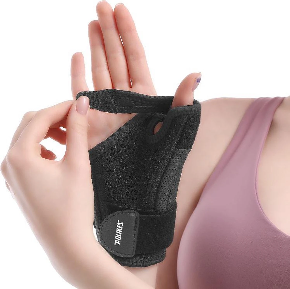 - LICHTGEWICHT SPICA SPLINT – De anatomisch gevormde spalk die netjes weggewerkt is, ondersteund en zet de onderkant van de duim vast zonder functionele vingerbewegingen te belemmeren.