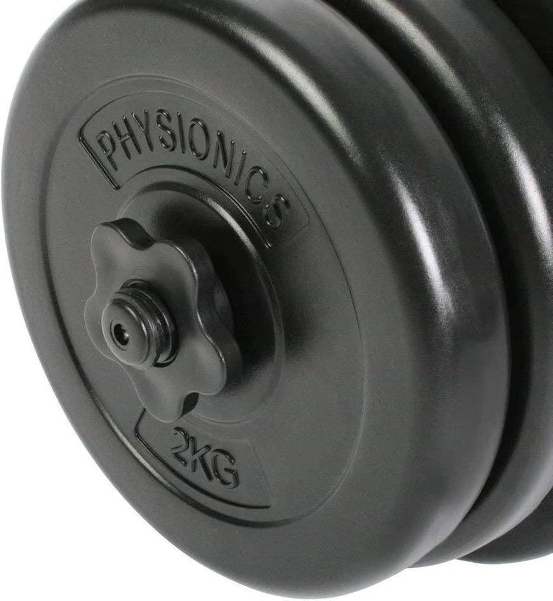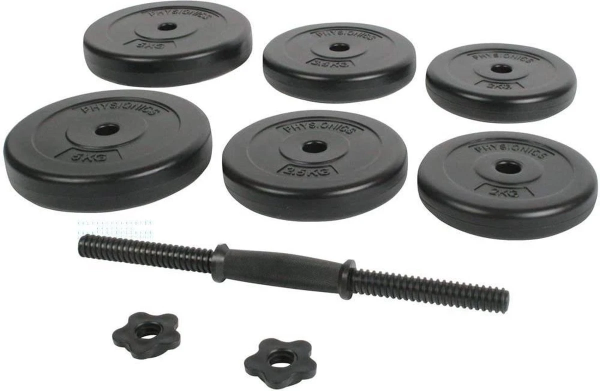 Haltertraining is ideaal voor een verscheidenheid aan oefeningen die uw vorm verbeteren en de onbalans van de spieren corrigeren. De set bevat een ergonomisch gevormde dumbbellbars en 6 halterschijven en weegt in totaal 20 kg. De halterstang heeft een antislip geribbelde handgreep zodat u zich tijdens uw trainingssessie kunt concentreren op het gewichtheffen, terwijl de spinlock-kragen de halterschijven bevestigen.