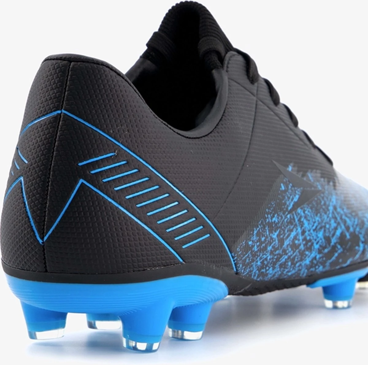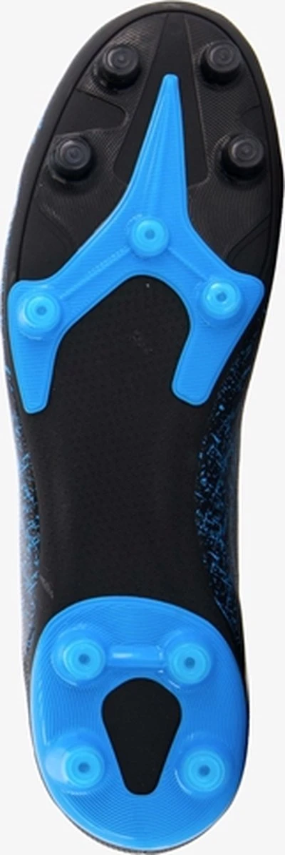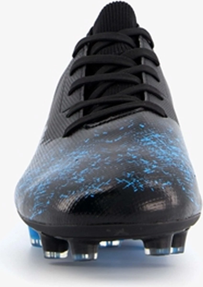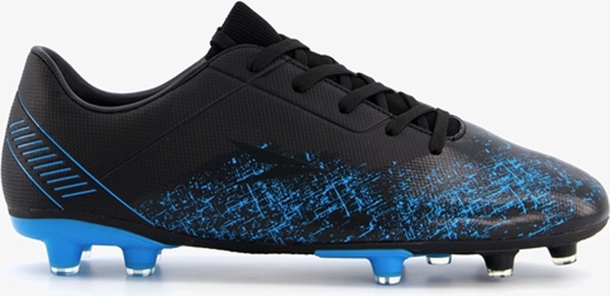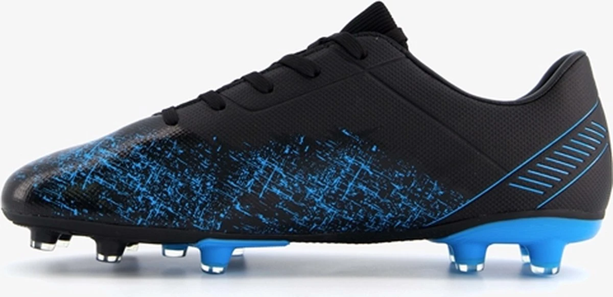 Zwarte Dutchy Counter voetbalschoenen. Gemaakt van imitatieleer, een binnenwerk van iimtatieleer en een stevige Firm Ground zool. Deze FG zool is geschikt voor (droog)natuurgras en bestaat uit kunststof noppen die je veel grip geven op het veld. De voetbalschoenen hebben een vetersluiting. De voetbalschoenen hebben blauwe accenten op het bovenwerk en een gedeeltelijk blauwe buitenzool.