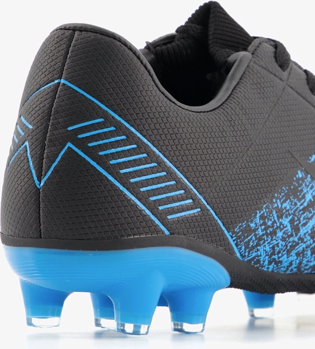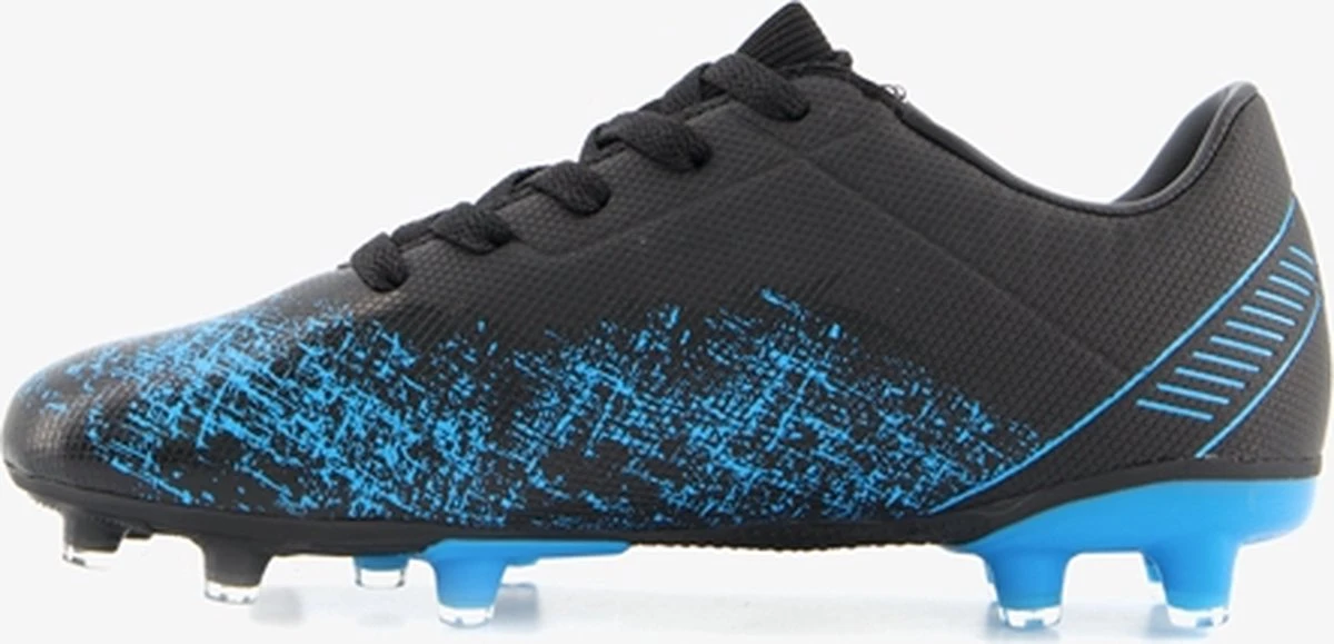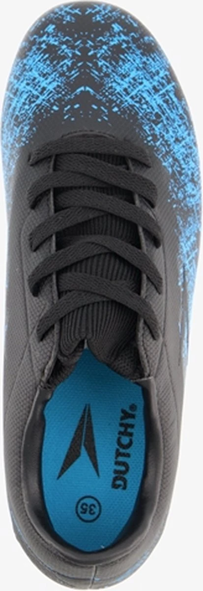 Zwarte Dutchy Counter voetbalschoenen . Gemaakt van imitatieleer, een binnenwerk van textiel en een stevige Firm Ground zool. Deze FG zool is geschikt voor (droog)natuurgras en bestaat uit kunststof noppen die je veel grip geven op het veld. De voetbalschoenen hebben een vetersluiting en uitneembare maatcheck-binnenzool van textiel zodat je precies weet welke maat je moet kiezen. De voetbalschoenen hebben blauwe accenten op het bovenwerk.