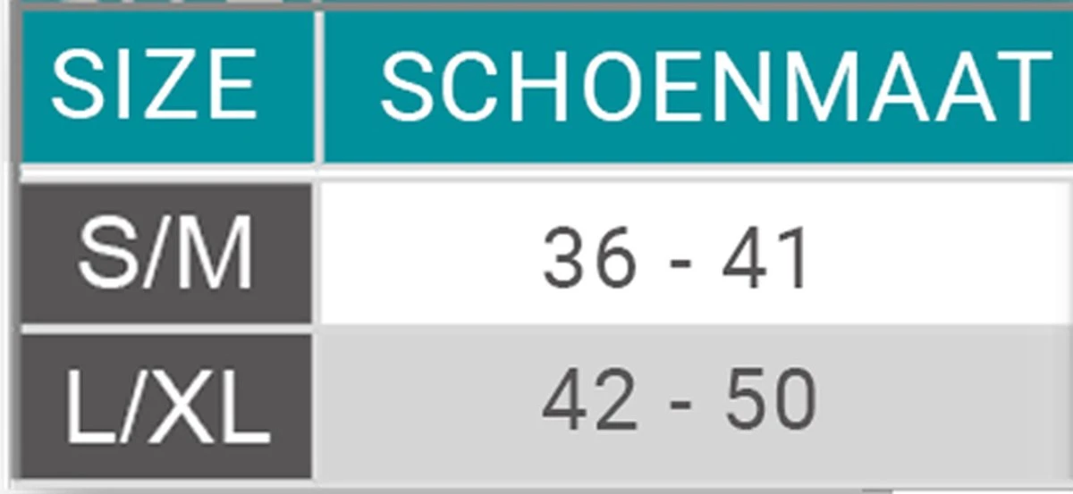 Open de klittenbandsluiting en plaats de voet in de sok. Creëer doormiddel van de spanband van klittenband de juiste rek op de onderkant van de voet.