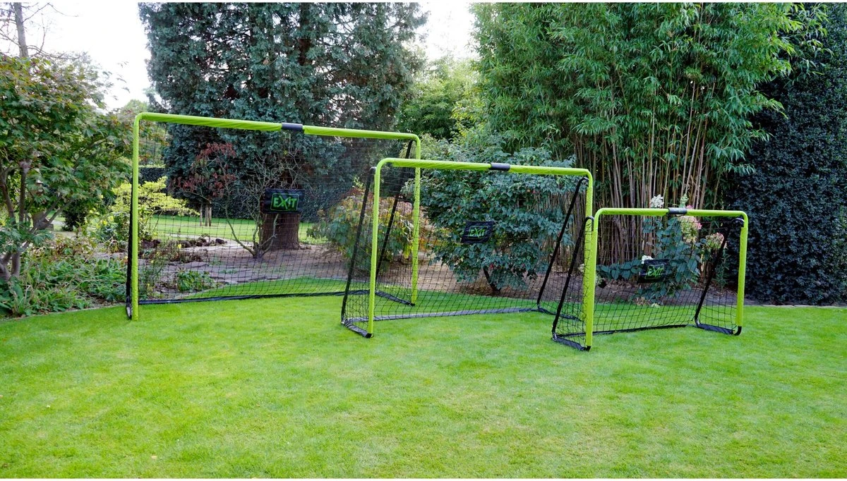 Het EXIT Tempo stalen voetbaldoel, in de kleuren groen en zwart, is robuust en mooi vormgegeven. Met de voetbaldoelen van EXIT Toys train je je voetbalvaardigheden eenvoudig op iedere locatie.
