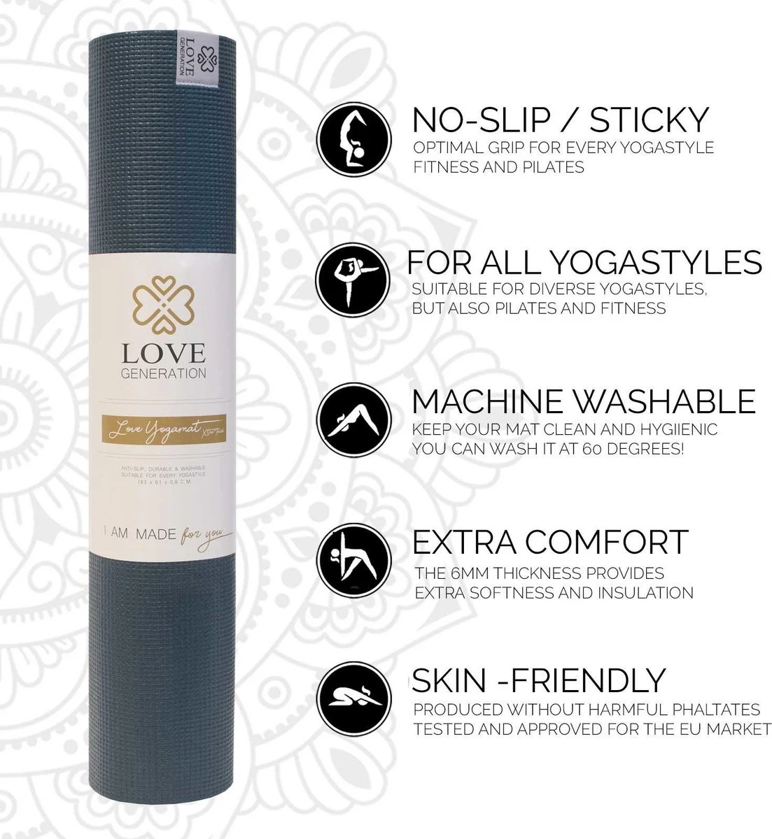 Kortom: deze extra dikke Love yogamat is de ideale yogamat voor iedereen die net dat beetje meer comfort zoekt!