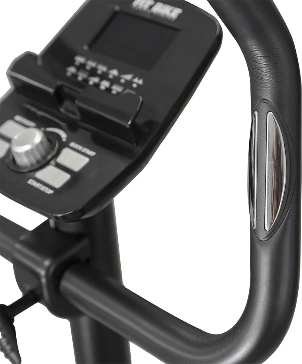 Via de handgrepen op het stuur wordt (een indicatie van) je huidige hartslag gemeten. Deze hartslag wordt op het display weergegeven.
