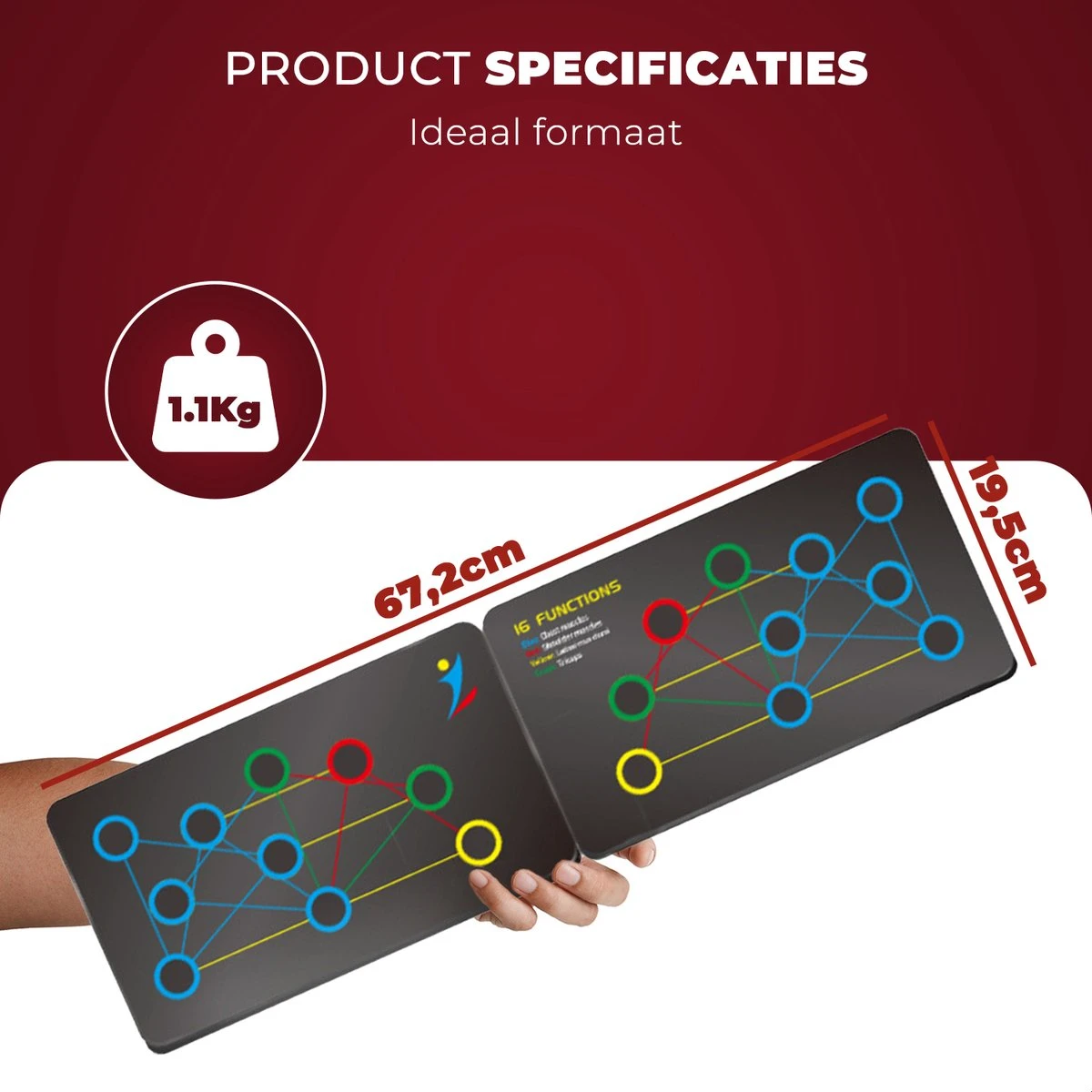 Wil jij een fit lichaam of gewoon weg sterker worden? maar geen uren in de gym besteden of duizenden euro’s betalen aan gereedschap. dan is ons product geschikt voor jou! met het 16 in 1 push up bord kan jij elke spier waar en wanneer goed trainen. door het lichtgewicht en het uiteenhalend meganisme is ons product perfect voor mee te nemen en kan het overal gebruikt worden. dus geen reden om niet te sporten met ons push up bord!
