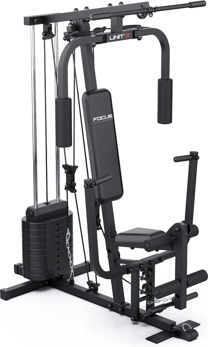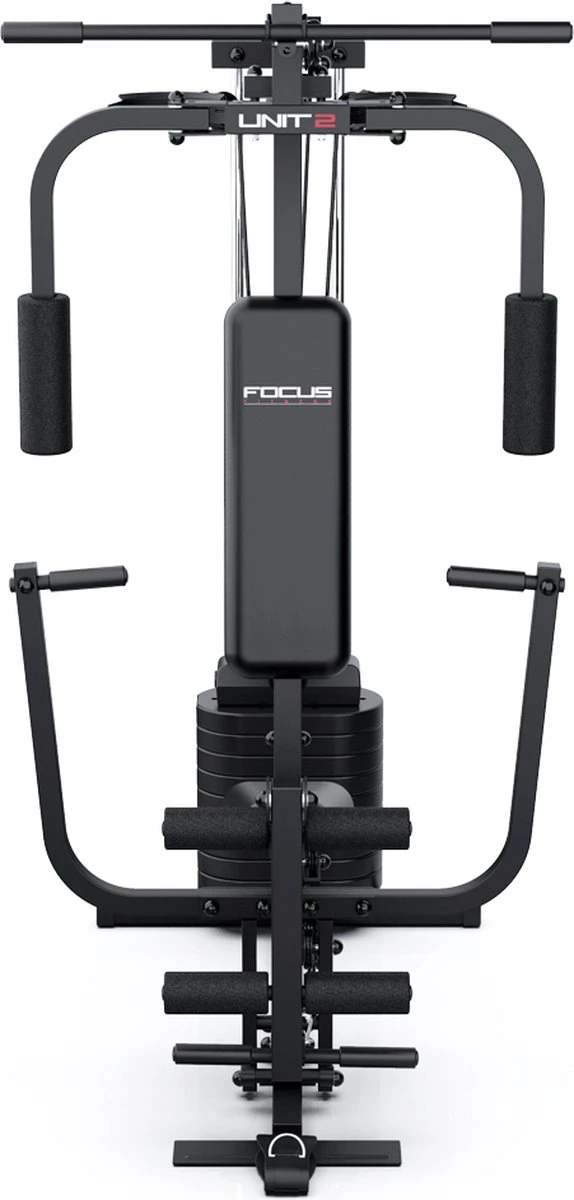 Voor de beginnende kracht sporter is de Home Gym Unit 2 van Focus Fitness een prima gym ter vervanging of aanvulling op uw sportschool abonnement. De Unit 2 is compact maar toch veelzijdig. Met de Home Gym Unit 2 kun je meer dan 30 verschillende oefeningen doen en train je je hele lichaam. De Focus Fitness Home Gym Unit 2 heeft verschillende trainingsunits. Bij veel Home Gyms bestaat de bankdruk en butterfly uit één unit. Bij de Unit 2 is er bewust voor gekozen om deze 2 units apart te houden. Je hebt dus zowel aparte bankdruk als butterfly beugels. Hierdoor kun je de oefening vanuit een betere positie uitvoeren.