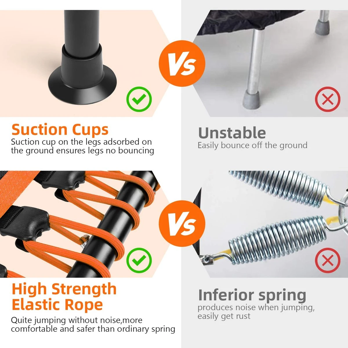 De Fitness trampoline is geschikt voor zowel beginners als ervaren gebruikers. De beugel met het handvat is eenvoudig verstelbaar in 3 verschillende standen, zodat je het handvat in iedere gewenste hoogte kan instellen. Ben je een beginner? Gebruik het verstelbare handvat dan voor stabiliteit en ondersteuning. Ben je een ervaren gebruiker? Dan is het handvat ideaal voor geavanceerde workouts!