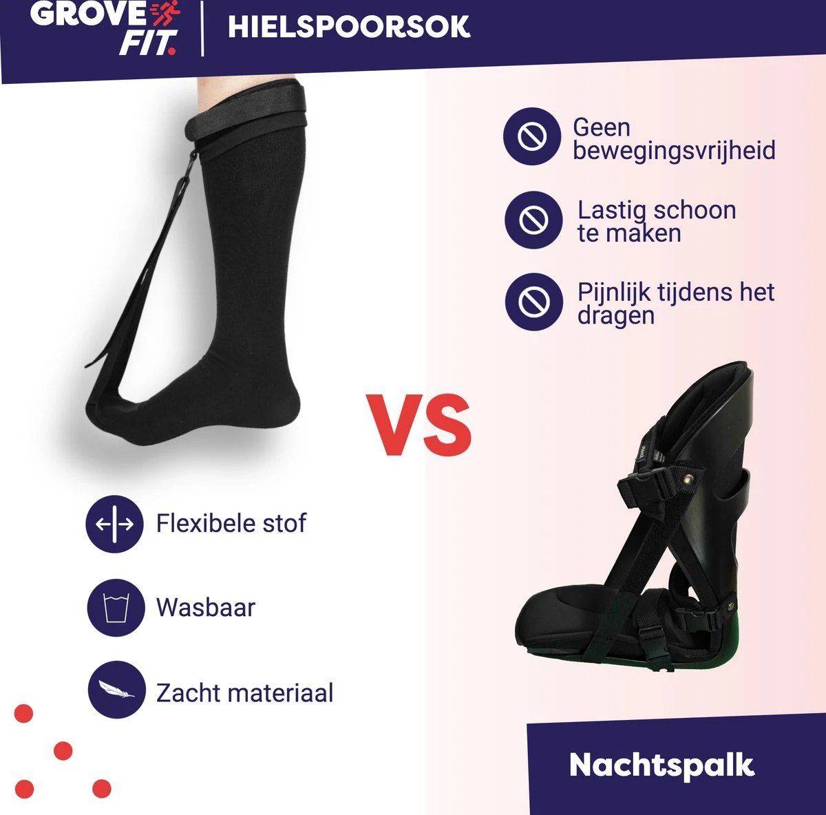 Heb jij ook helemaal genoeg van die aanhoudende pijn in je achillespees of wil je zo snel mogelijk van je hielspoor af? Met het gebruik van de GroveFit Hielspoorsok ben je binnen een paar dagen al van je klachten af. De Hielspoorsok is verstelbaar door de klittenbandsluiting en is gemaakt van zacht polyester en katoen waardoor de sok een strakke pasvorm heeft en goed ventileert. Maak dus nu gebruik van de GroveFit Hielspoorsok en je klachten zijn verleden tijd!