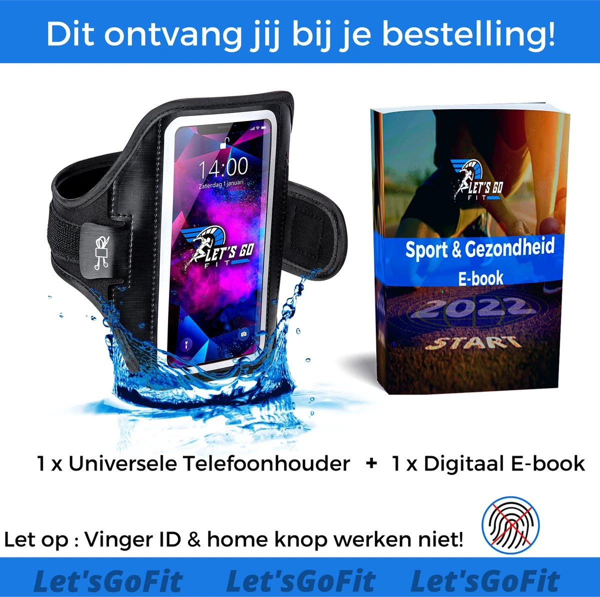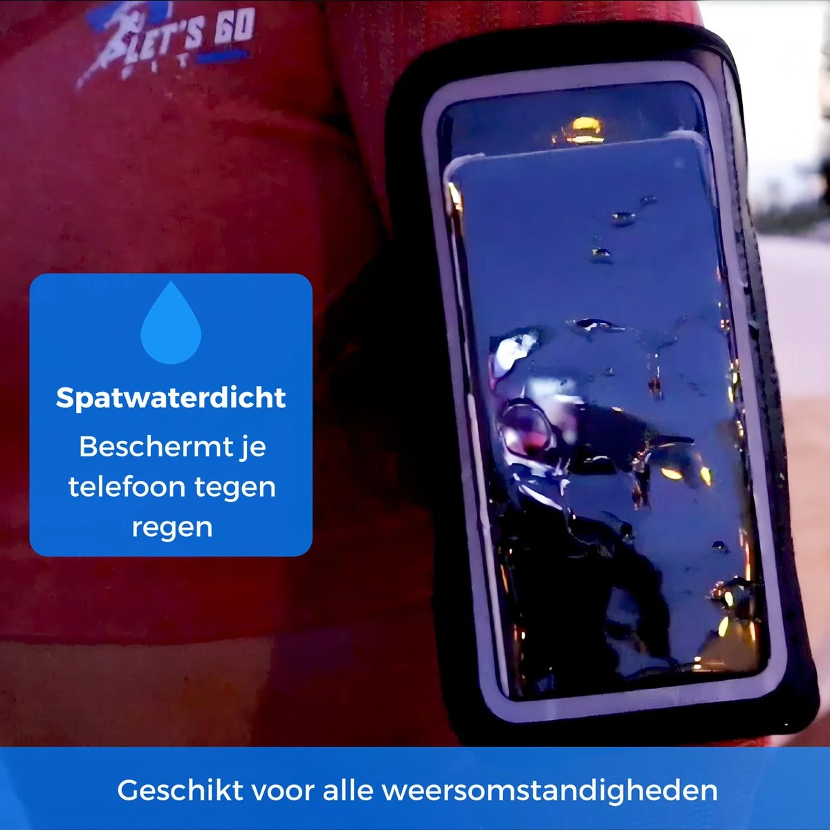 Ren ongestoord door, wees niet bezig om je telefoon de hele tijd op de juiste plek te houden. Ren veilig en hou je handen vrij. Gebruik deze verstelbare, universele sportarmband van Let’sGoFit die past voor jouw telefoon en arm! Word niet gestopt door wat waterdruppels, deze hardloop telefoonhouder is spatwaterdicht en goed tegen zweet!