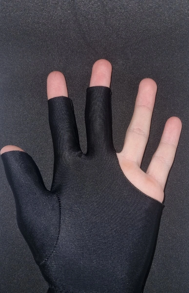 Biljarthandschoen, zijdeachtig (spandex), perfecte pasvorm en sluit als een tweede huid om je hand