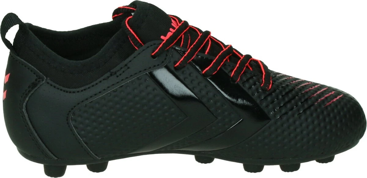 Zoom JR FG van hummel in de kleur zwart, geschikt voor heren en dames. De hummel Zoom JR FG is een fijne, stijlvolle voetbalschoen voor kinderen. De schoen is zowel geschikt is voor gras als voor kunstgras en voorzien van neopreen sok. Deze neopreen sok is helemaal van deze tijd en zorgt voor een heerlijk aangesloten gevoel. De Zoom JR FG heeft een doorgestikte rubberen noppenzool voor een goede wendbaarheid en perfecte grip. De schoen heeft een lichtgewicht kunststof upper en met symmetrische vetersluiting. De verharde hielkap zorgt voor extra stabiliteit en de doorgestikte neus geeft extra stevigheid.