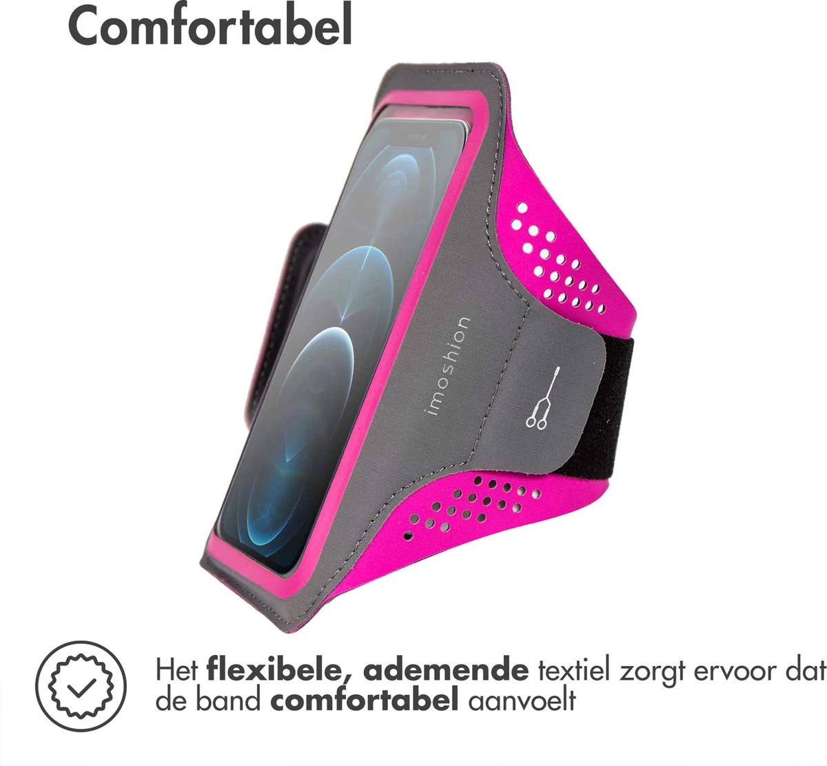 Dankzij de elastische band bevestig je de armband gemakkelijk om jouw arm. Bepaal zelf gemakkelijk hoe strak je de band wil bevestigen en wat voor jou fijn voelt. Door het krachtige klittenband ben je er van verzekerd dat de armband gedurende jouw gehele sportsessie goed zal blijven zitten!