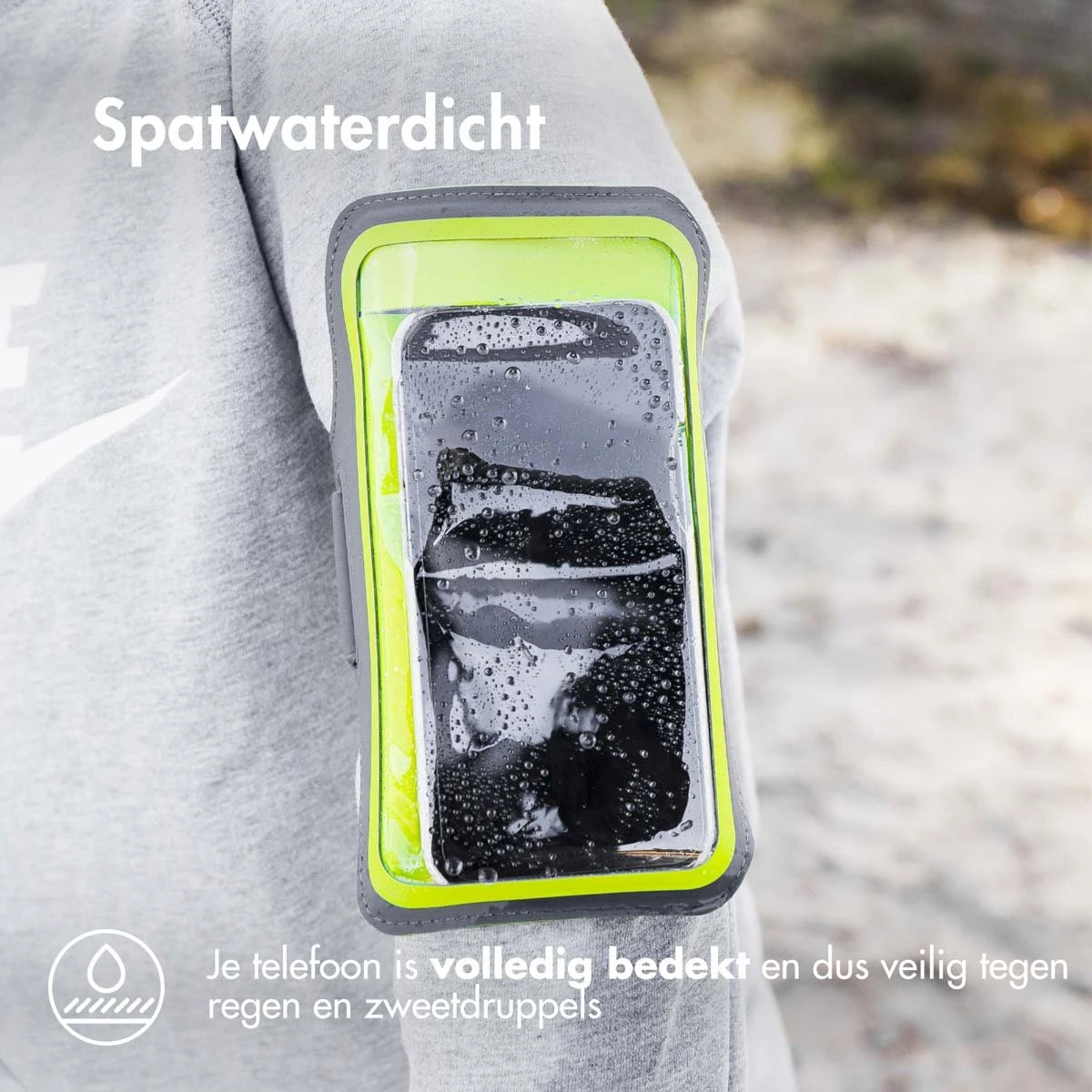 Deze sportarmband is gemaakt van flexibel en ademend textiel. Hierdoor zal je geen ongemak ervaren van het dragen van deze band tijdens het sporten. Het materiaal zorgt ervoor het dat huid genoeg lucht kan krijgen en niet zal irriteren tijdens jouw zware workout. Daarnaast is armband spatwaterdicht waardoor hij jouw telefoon zal beschermen tegen plotselinge regenbuien.