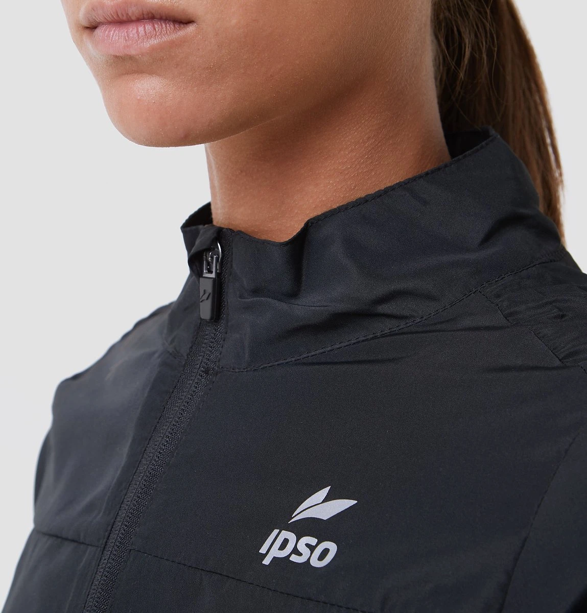 Is er een regenbui op komst? Geen probleem met deze Waterproof Wind hardloopjas van IPSO. Dit zwarte damesjack houdt je ondanks een regenbui droog en comfortabel terwijl jij een rondje hardloopt door de bossen. Het mesh onder de oksels zorgt voor extra ventilatie op inspannende momenten, terwijl de reflecterende details ervoor zorgen dat jij ook in het donker en met regen veilig naar buiten gaat!