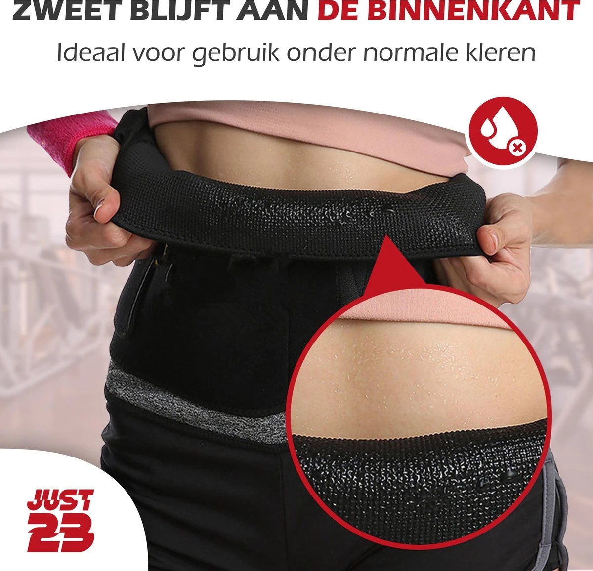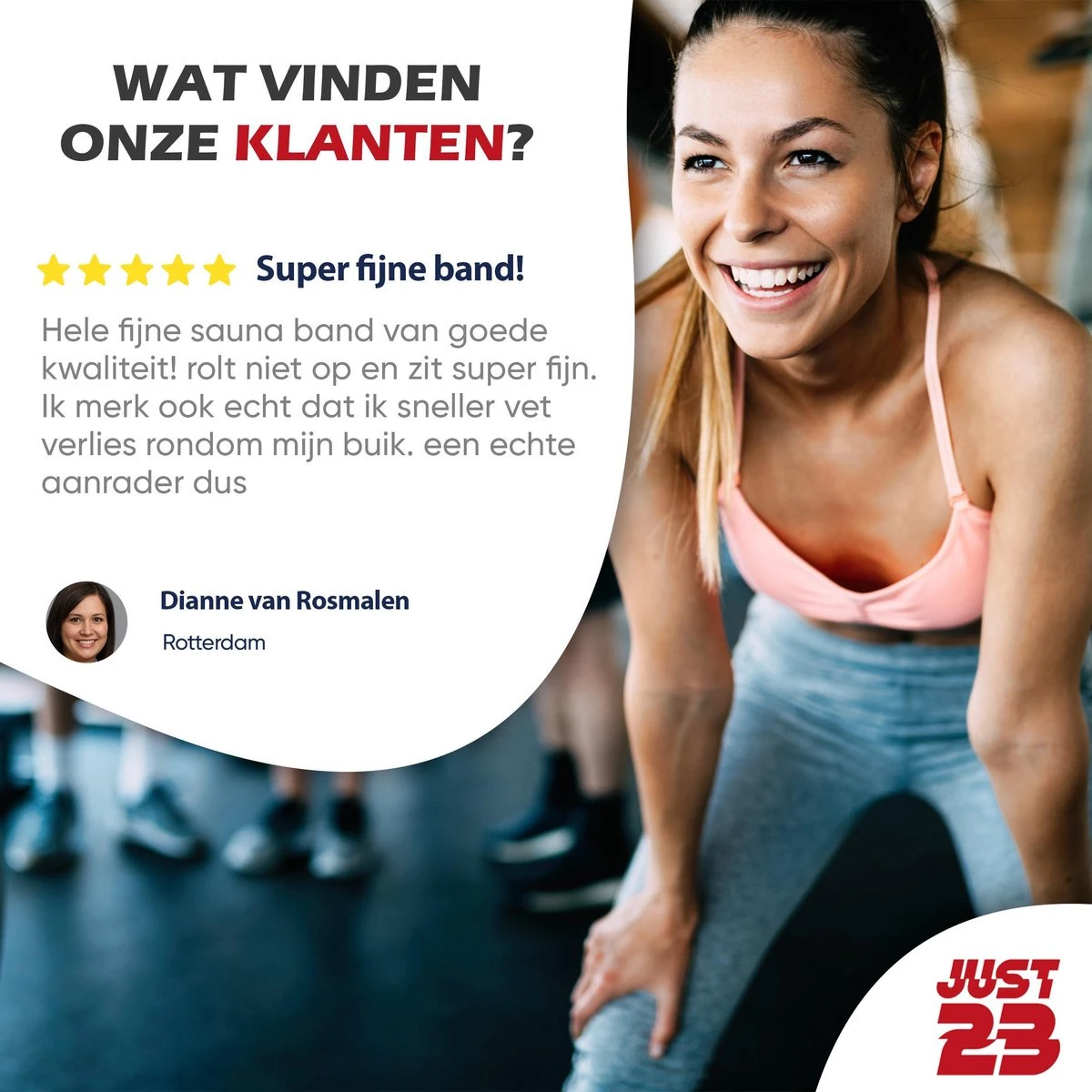 Afvallen kost veel tijd en moeite en soms bereik je een punt waarop je écht niet meer verder komt in je trainingsproces (en dit vooral rondom de middel). Om door dit plafond te doorbreken kun je gebruik maken van de sauna band van JUST23. Door het dragen van de sauna band tijdens het sporten verhoog je de tempratuur rondom je middel waardoor je plaatselijk overmatig gaat transpireren. Naast dat de sauna band zorgt voor het plaatselijk zweten beoefend de band ook corrigerende druk uit op je buik en krijg je door dit “sauna-effect” een slankere taille en dus een plattere buik. Je zult merken dat je binnen de kortste keren jouw buikvet aanzienlijk sneller weg sport dan normaal!