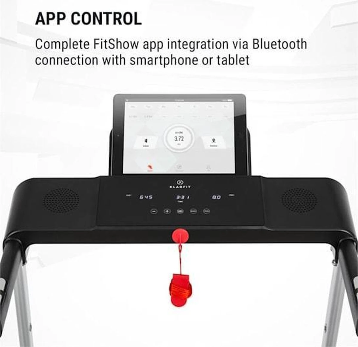 Klarfit Treado Active Loopband – 10 Km/h – 1PK – 36 X 100 Cm – Bluetooth – Trainingscomputer Met Tablethouder – Touch-display