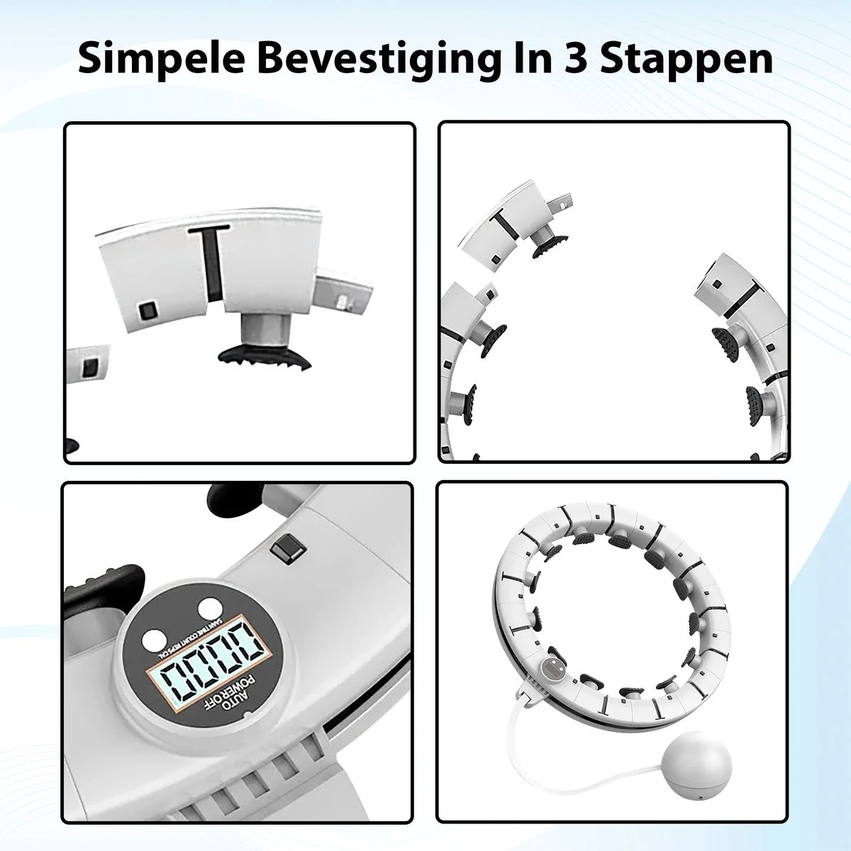 De fitness hoelahoep is erg gemakkelijk te monteren door middel van het kliksysteem. U kunt de fitness hoelahoep verstellen naar elke maat. Zo is de fitness hoelahoep verstelbaar voor iedereen in huis!