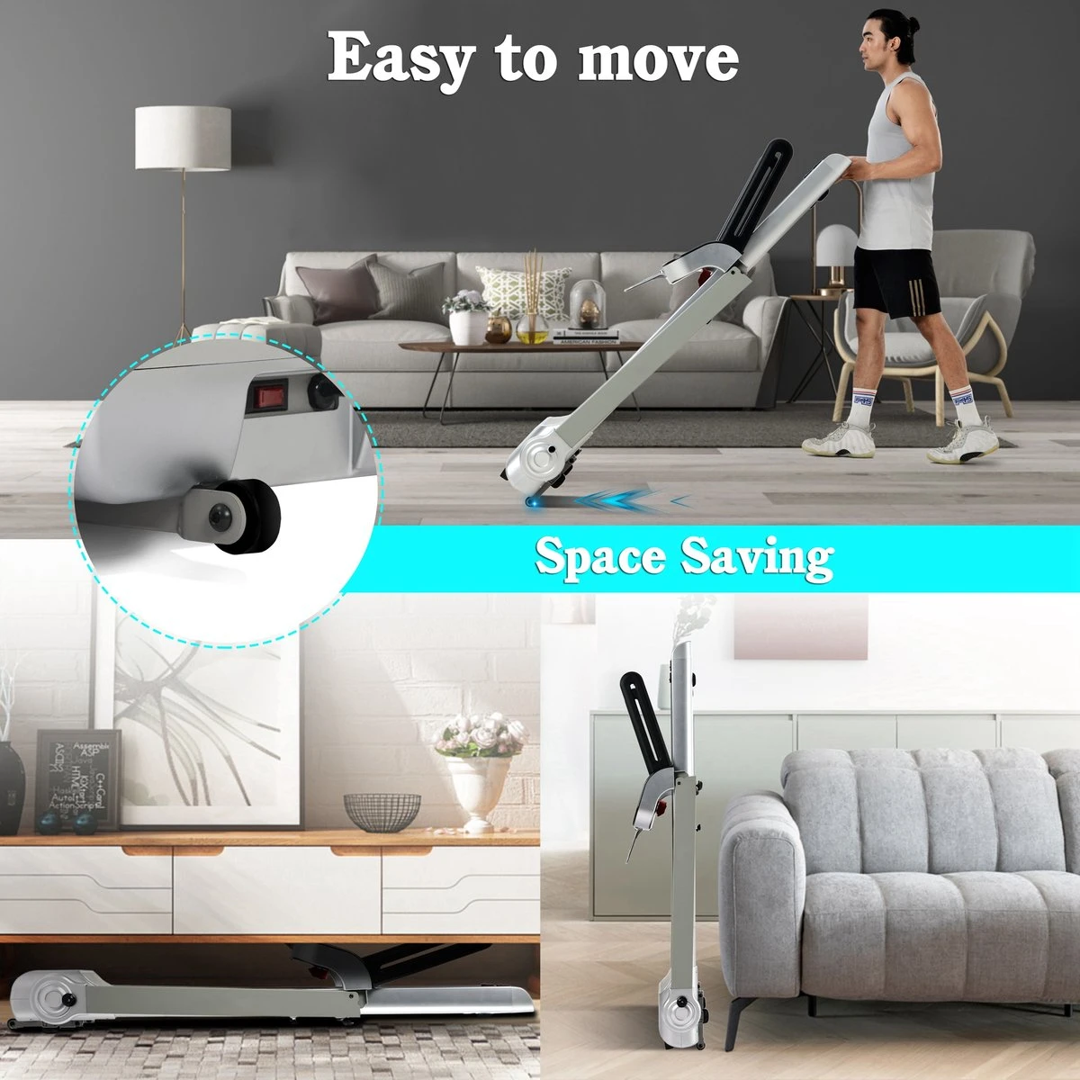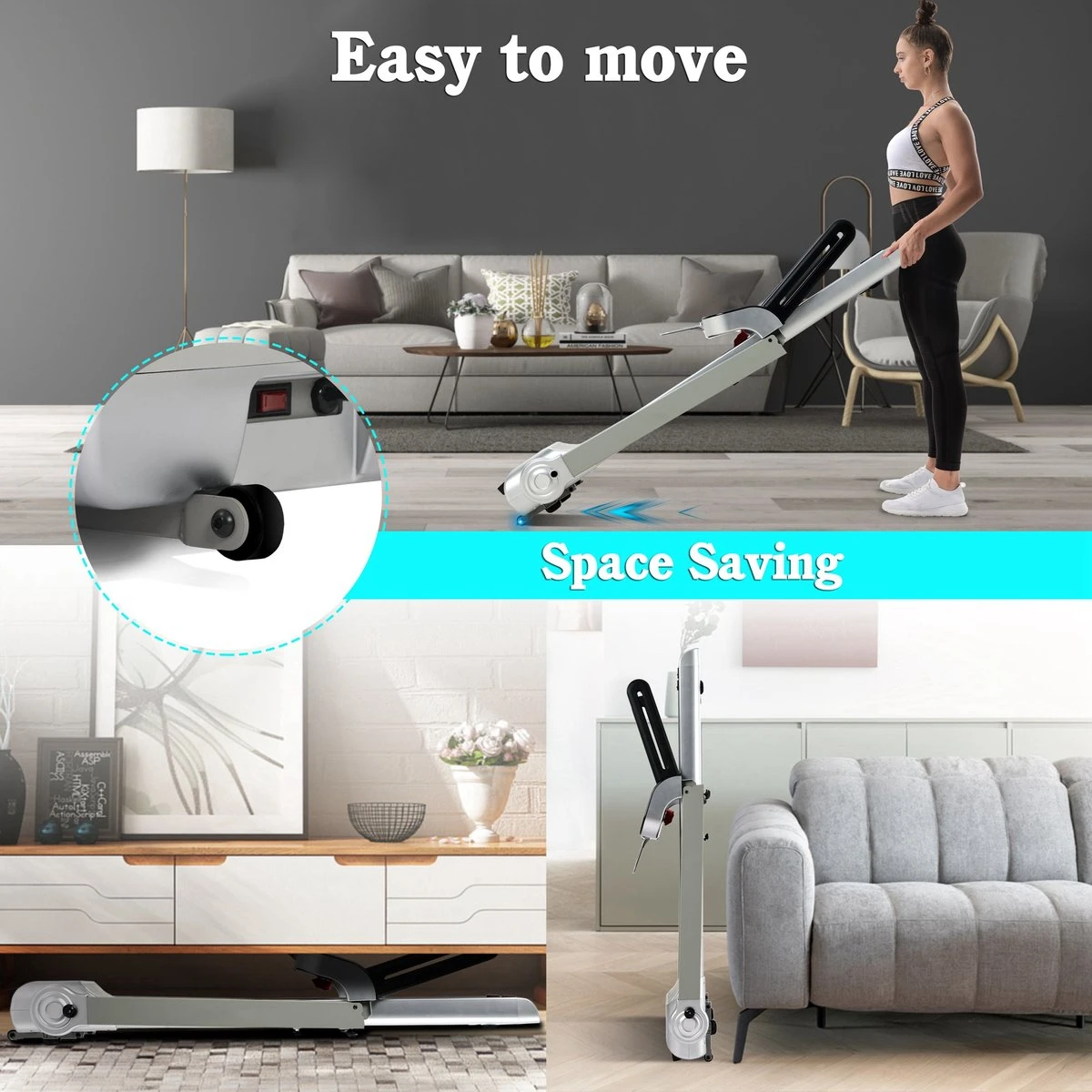 Deze stijlvolle loopband is ook ontworpen met gebruiksgemak in gedachten. Het is gemakkelijk te monteren en op te vouwen, wat handig is als je weinig ruimte hebt. De transportwielen maken het gemakkelijk om de loopband te verplaatsen en op te bergen.