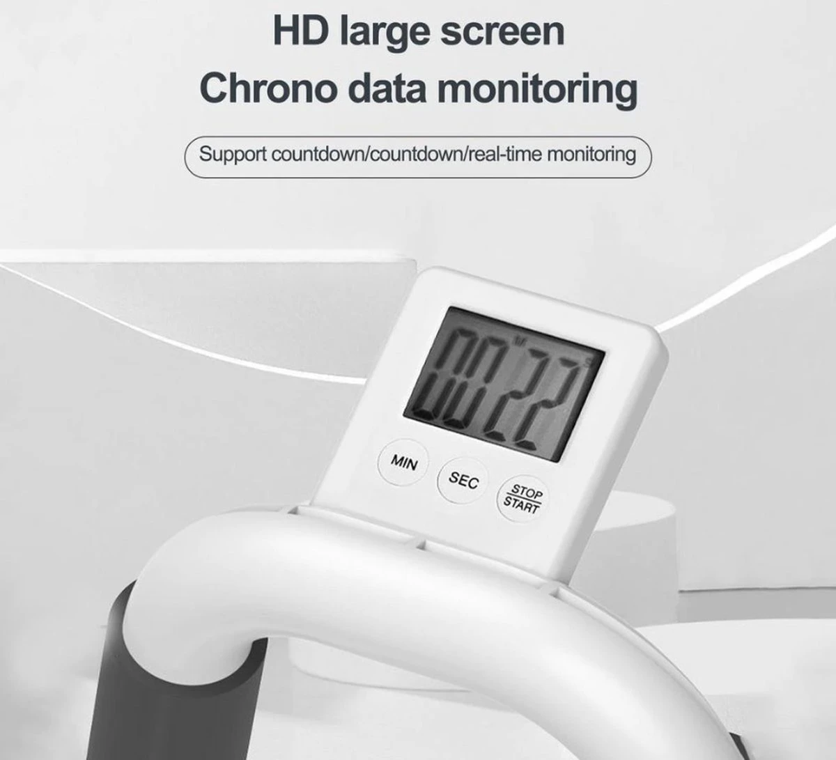 Onze planktrainer is op grote schaal toepasbaar voor alle soorten training. Het kan worden gebruikt voor verschillende trainingen, waaronder armen, borst, buik, rug, billen en onderlichaamspieren. Houd de minuuttoets en de secondewijzertoets ingedrukt om tegelijkertijd te resetten naar 00:00, druk op de start/stop-toets om de timing te starten en druk nogmaals op de start/stop-toets om de timing te `stoppen. De planktrainer heeft een tijdlimiet van 99 minuten en 59 seconden. Wanneer de tijd is volbracht kunt u op een willekeurige toets drukken om de timer stop te zetten.