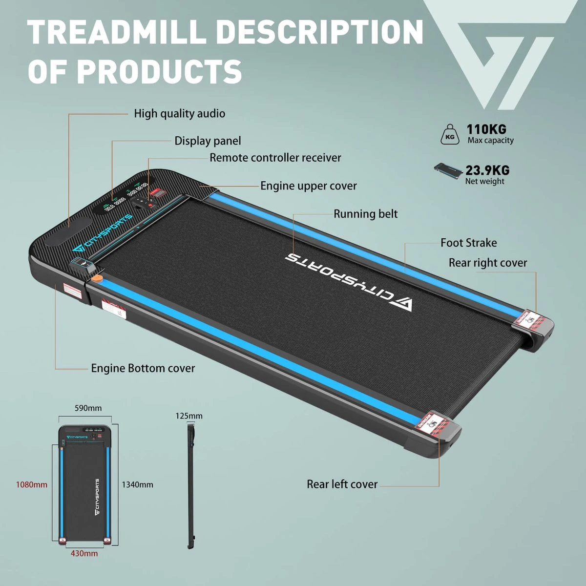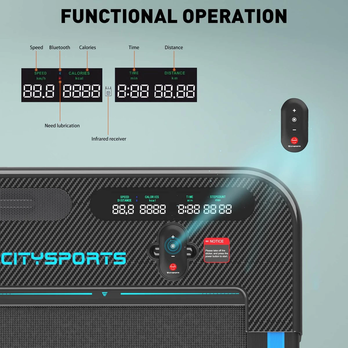 - INNOVATIVE SMART WALKIBG MACHINE: What a amazing treadmill, sleek & slim design. Bright backlit Dual LED display, Controlled by handeld wireless remote cotroller, equipped Surround Stereo Bluetooth Integrated Speakers, Full of technology and fashion.