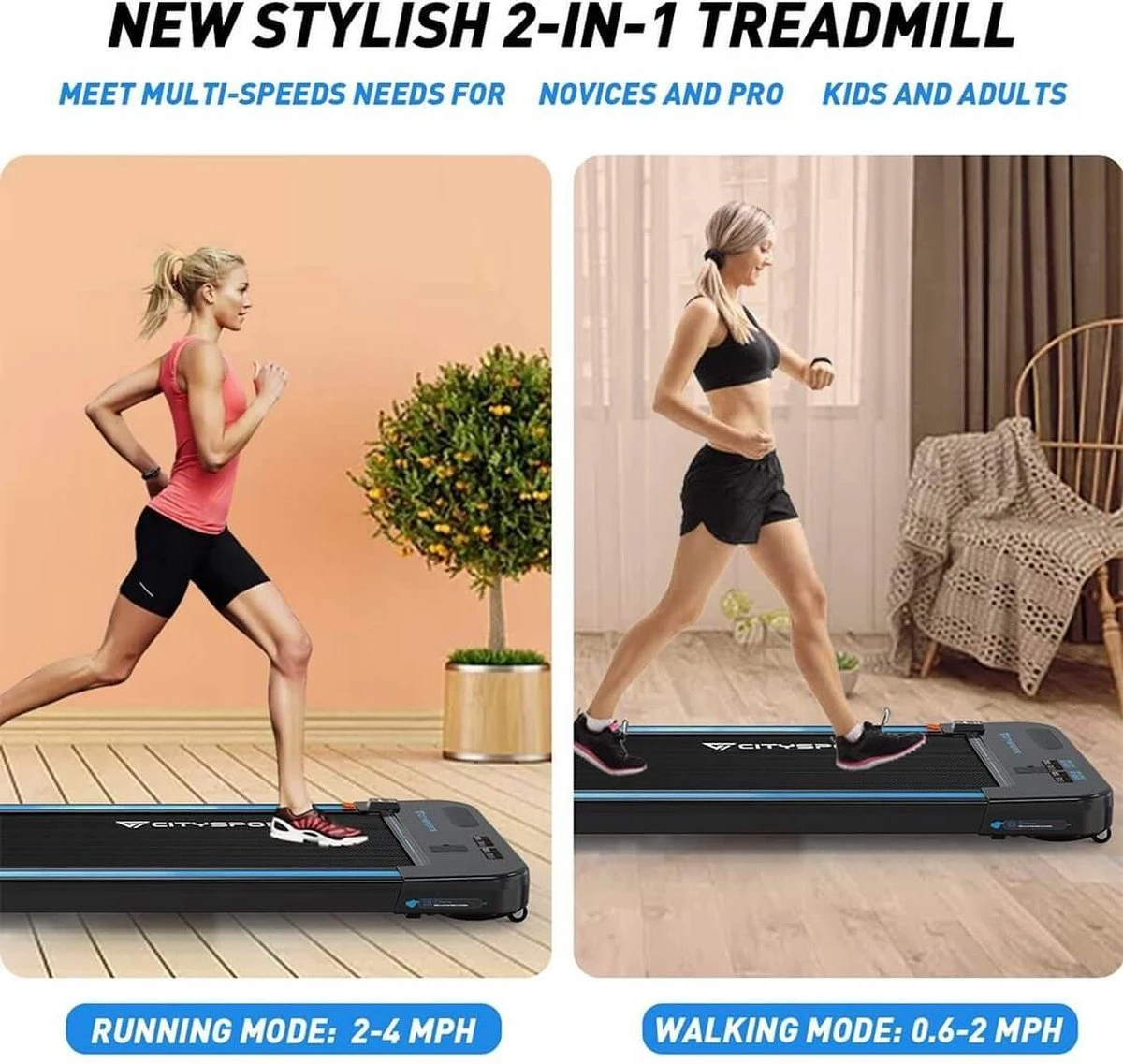 STEVIG DUURZAAM & MAXIMALE VEILIGHEID: Het loopkussen heeft een unibody-frame van magnesium-aluminiumlegering van luchtvaartkwaliteit, wat betekent dat het een grotere belasting tot 265 lb kan dragen. Loopband onder een bureau met een laag profiel voor gemakkelijk in- of uitstappen en een breder zijharnas maximaliseert de veiligheid.