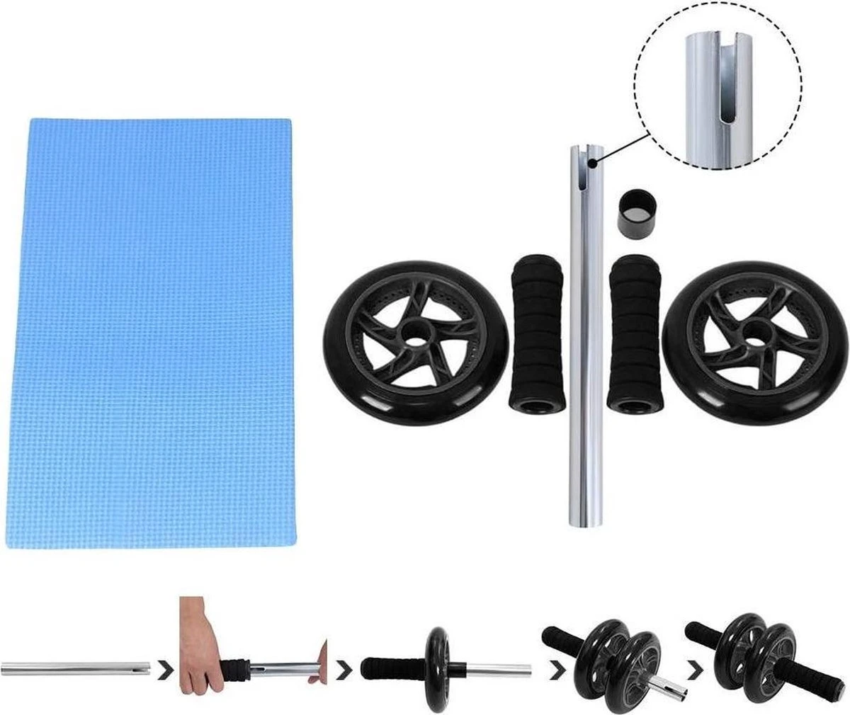 Dit is een stabiel buikspierwiel (Ab Wheel). Hij is uitgevoerd met 2 iets uit elkaar geplaatste wielen. Daardoor is hij extra stabiel. Op de handvatten is foam aangebracht. Dit zorgt er niet alleen voor dat je de oefeningen comfortabel uit kan voeren, het zorgt er ook voor dat je grip houdt op het wiel.