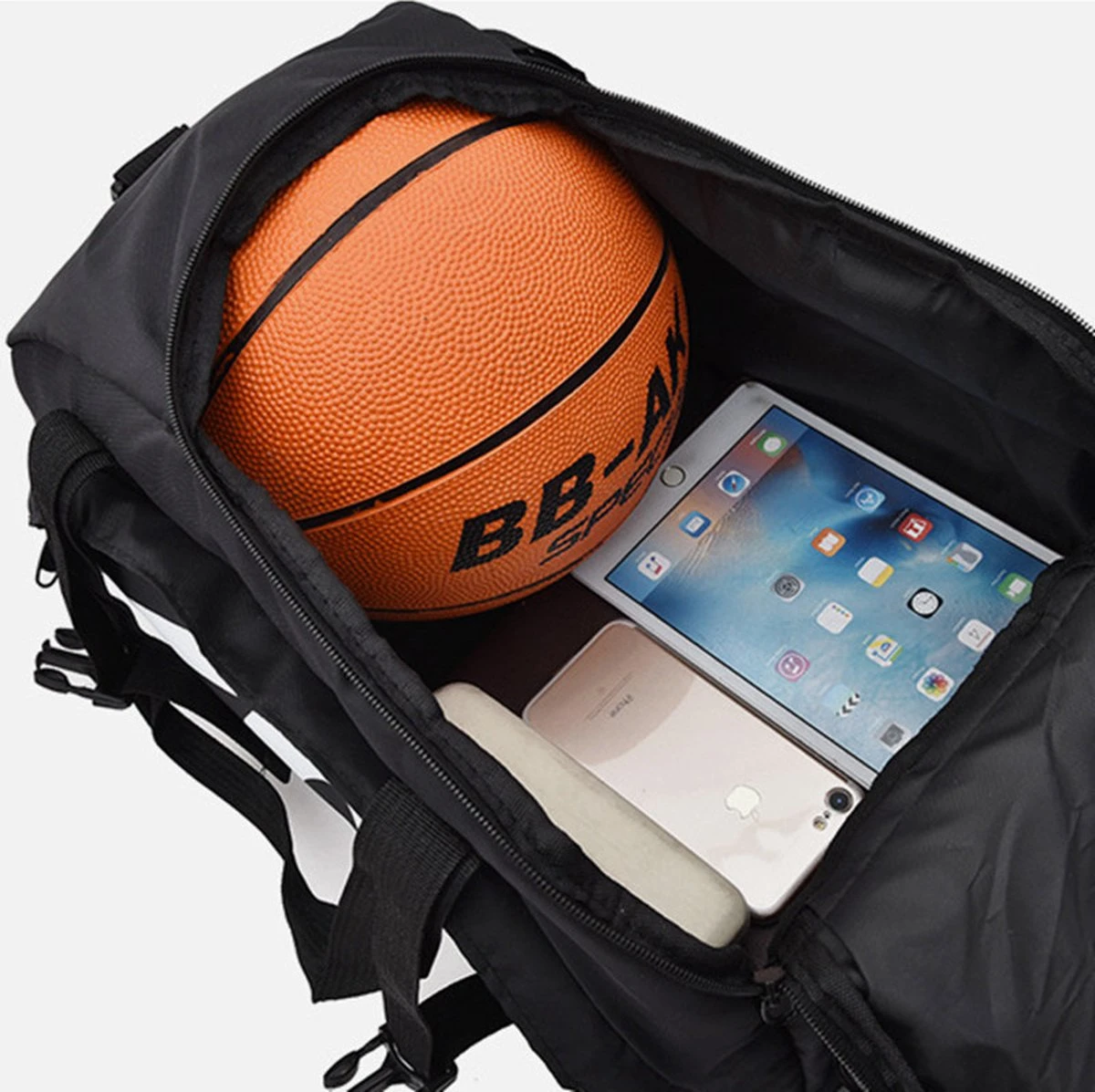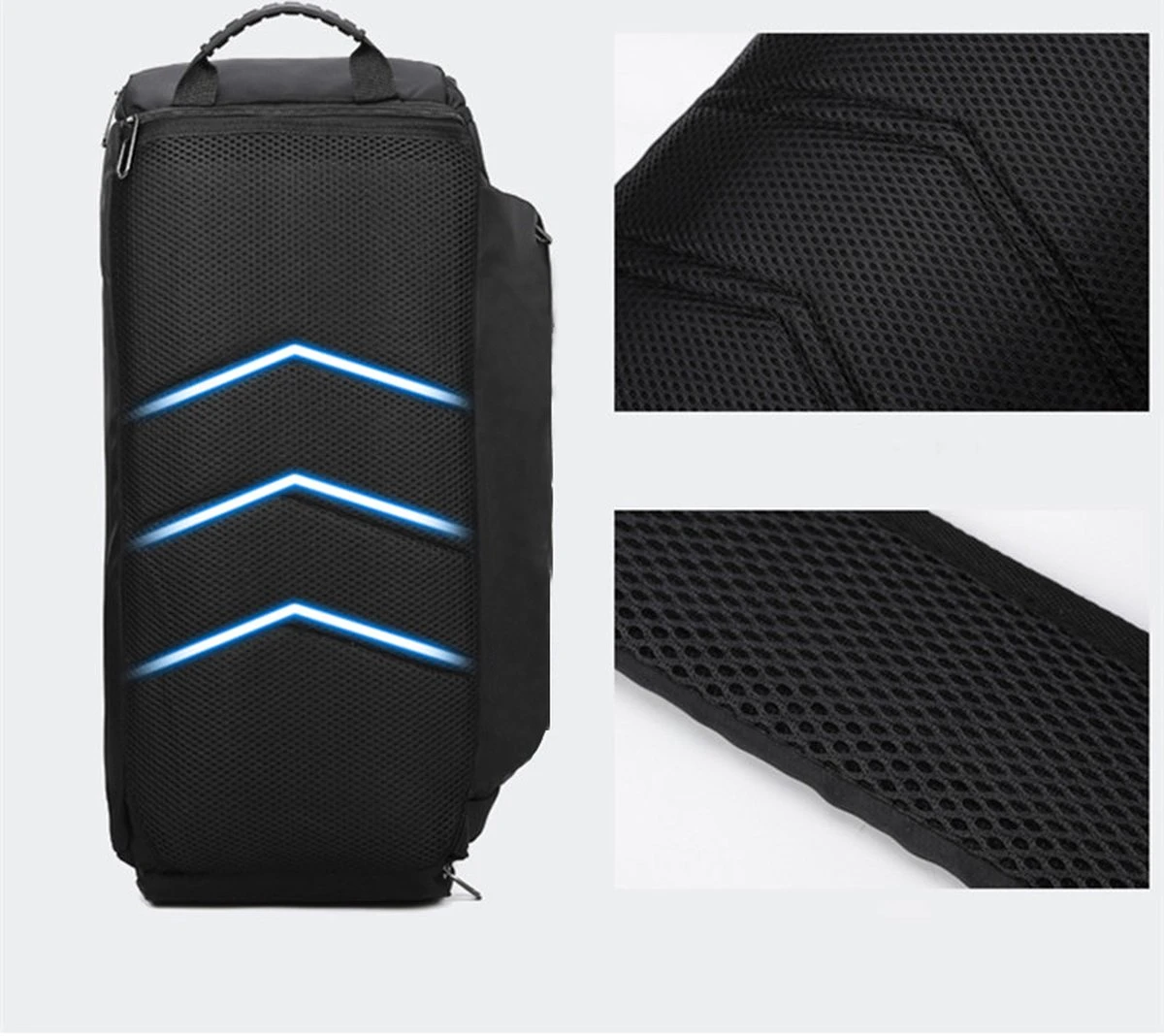 U kunt deze tas dragen als sporttas, maar ook als rugtas.
