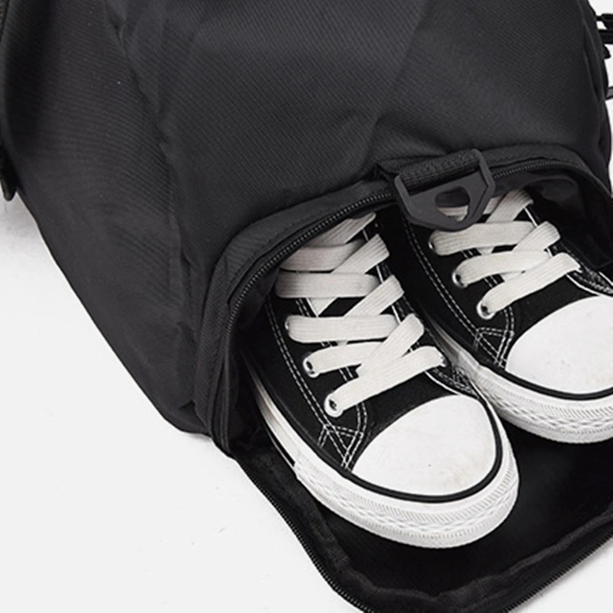 Deze tas beschikt over een schoenenvak, groot hoofdvak met rits, een voorvak met rits, 2 zijvakken met rits.